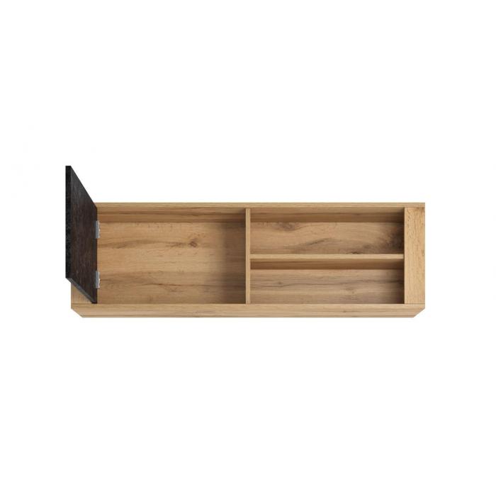 Szafka wisząca Smart 6 w kolorze dąb wotan z frontami w kolorze czarny beton. Szafka posiada jedną półkę. Za drzwiami znajduje się pojemna przestrzeń do przechowywania.