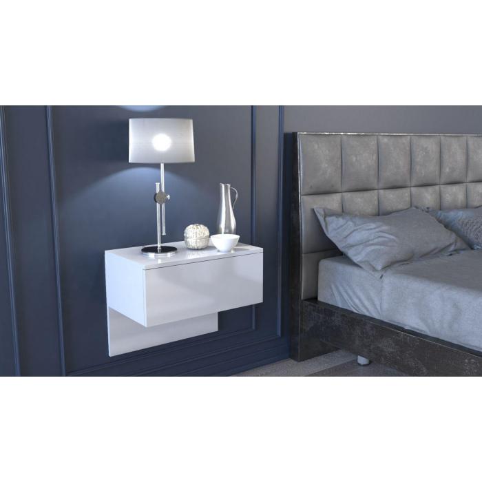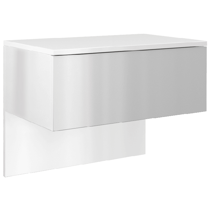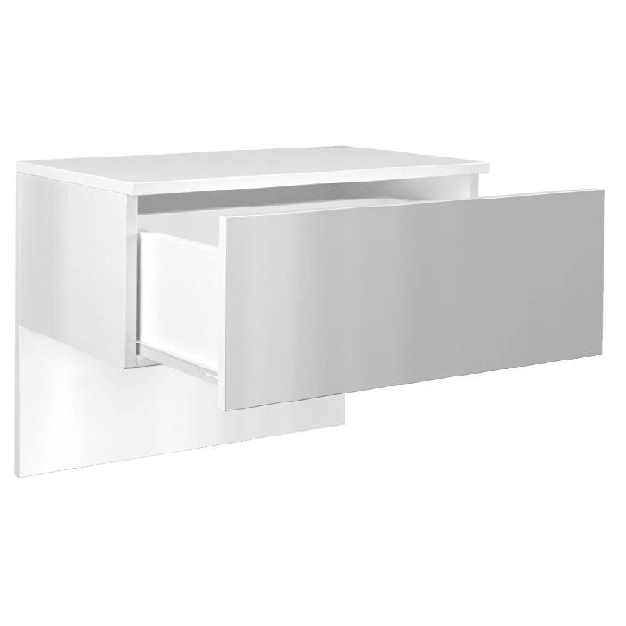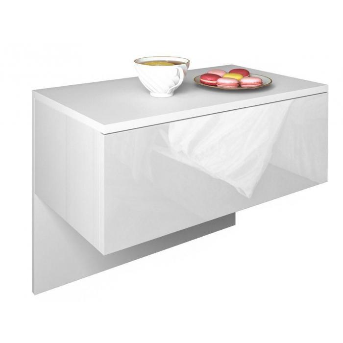 Szafka wisząca Elektra to nowoczesny mebel, który spełnia oczekiwania osób ceniących połączenie prototy i elegancji. Szafka o wymiarach 61x35x46 cm posiada minimalistyczną konstrukcję oraz jedną pojemną szufladę na prowadnicach rolkowych, która gwarantuje wygodne, a przede wszystkim bezpieczne użytkowanie. Z kolei boki szafki są jednolite bez otworów na zewnątrz, co zdecydowanie podnosi estetykę produktu. Fronty i boki komody wykonane są w białym połysku natomiast korpus w białym macie. Szafka sprawdzi się idealnie w salonie czy sypilani. Mebel został wykonany z najwyższej jakości płyty laminowanej odpornej na zarysowania i wilgoć wraz z wzmocnieniami obrzeży ABS oraz płyty MDF w połysku.
