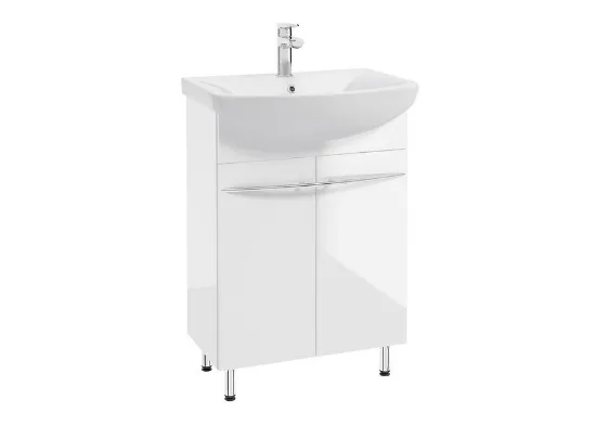 Nowoczesna szafka NOLA 60 w kolorze białym, idealna do łazienki, łączy elegancję z funkcjonalnością. Wykonana z płyty wiórowej, z frontami i korpusem o wykończeniu lakierowanym, prezentuje trwały i estetyczny wygląd. W zestawie znajduje się umywalka, a szafka posiada 2 drzwi z systemem samodomykania. Montaż stojący, wymiary: wysokość 84 cm, szerokość 60 cm, głębokość 40 cm. Szafka wymaga samodzielnego złożenia, oferując praktyczne miejsce do przechowywania w łazience.