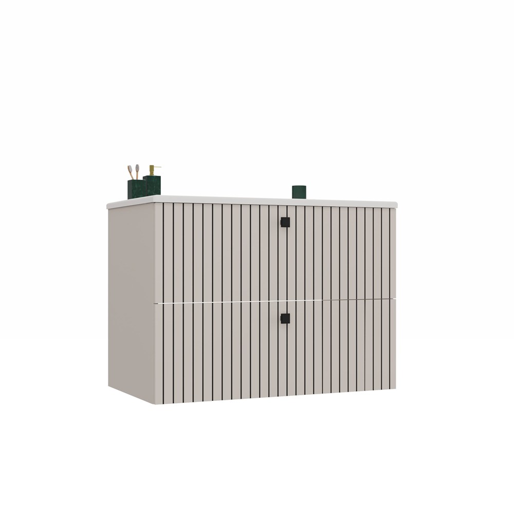 Szafka łazienkowa z umywalką Trigo 80 cm – kaszmir, ryflowany front, 2 szuflady