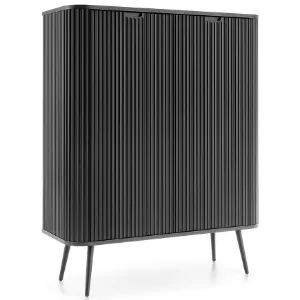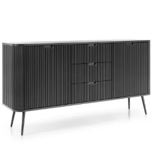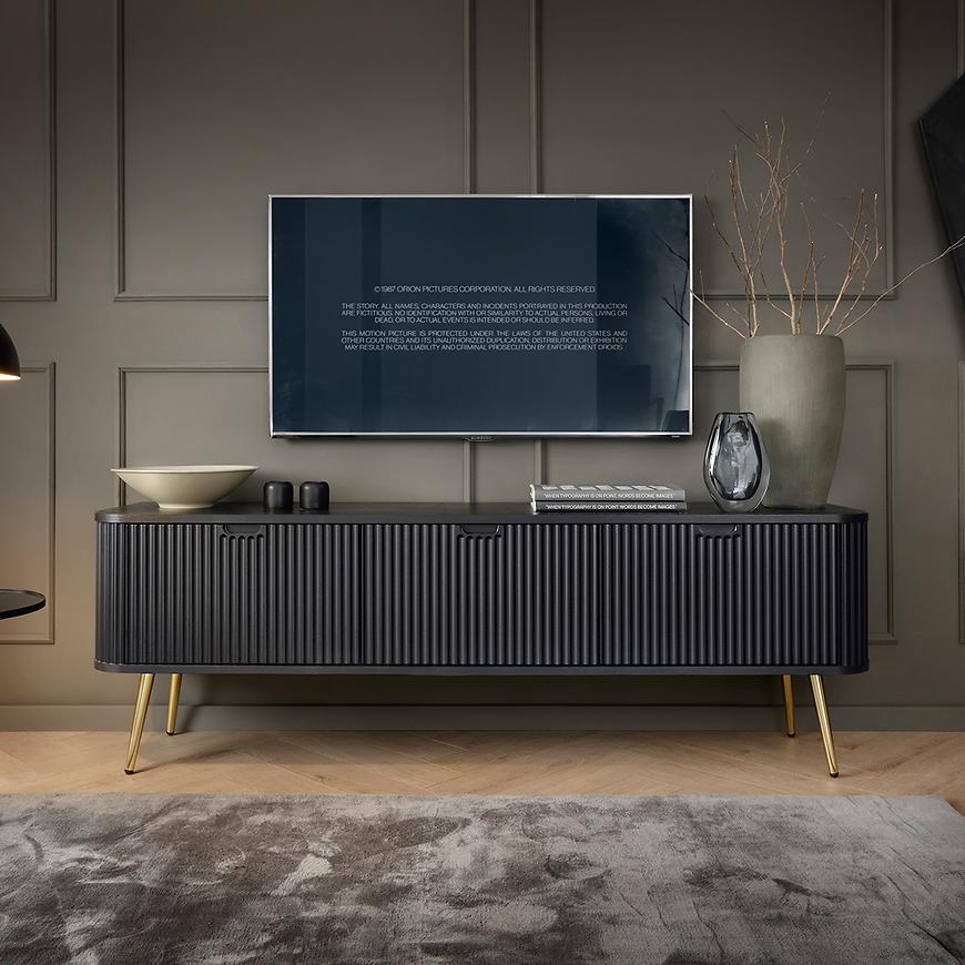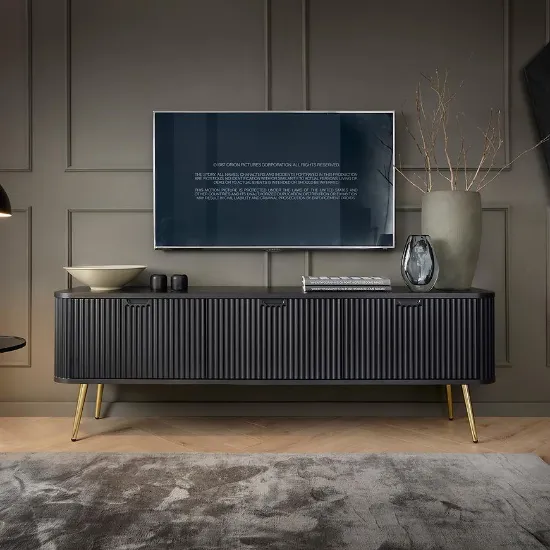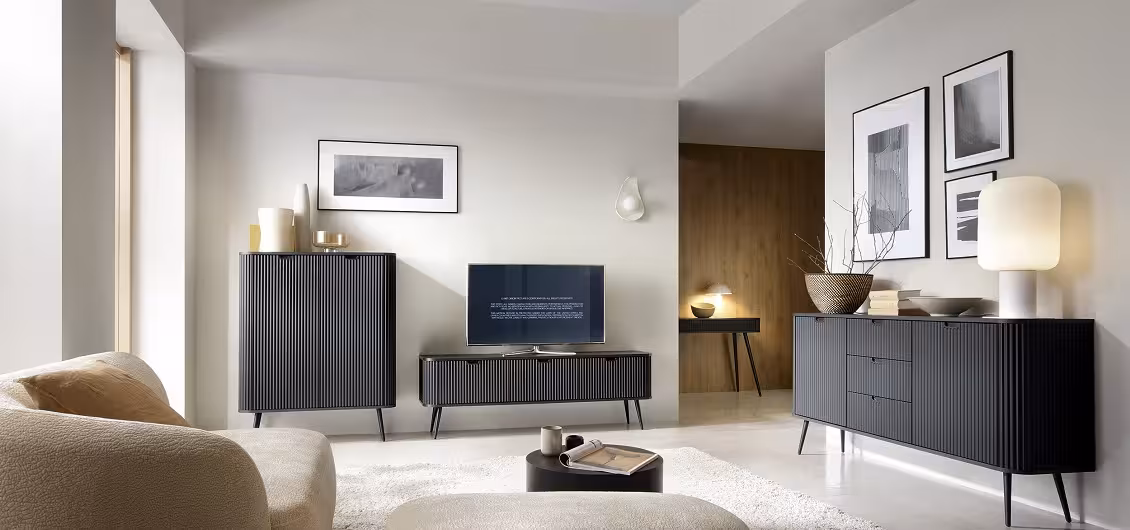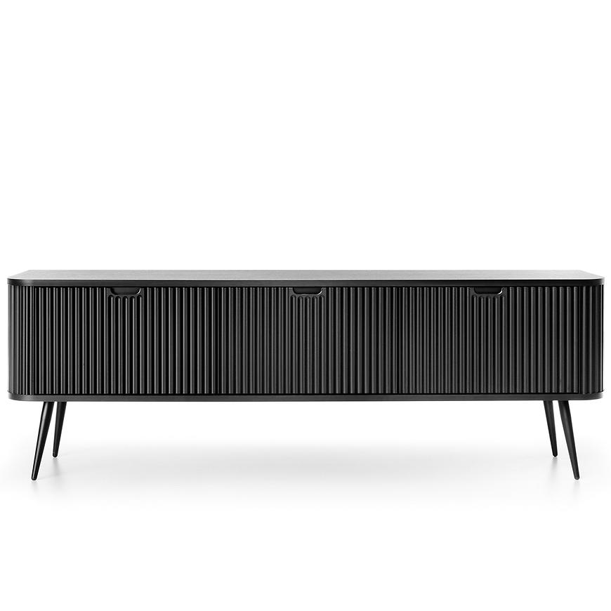 Szafka RTV Zova to nowoczesne i funkcjonalne rozwiązanie do salonu, które łączy estetykę z praktycznym przechowywaniem. Jej minimalistyczny design oraz matowe, czarne wykończenie sprawiają, że doskonale wpisuje się w aktualne trendy wnętrzarskie, dodając pomieszczeniu elegancji i charakteru.