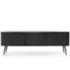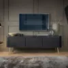 Funkcjonalność szafki RTV Zova zapewniają trzy zamykane szafki, które oferują przestrzeń do przechowywania sprzętu elektronicznego, kabli i innych akcesoriów. Dzięki temu można utrzymać porządek i estetyczny wygląd wnętrza. Trzydrzwiowa konstrukcja ułatwia dostęp do zawartości oraz pozwala na optymalną organizację miejsca.