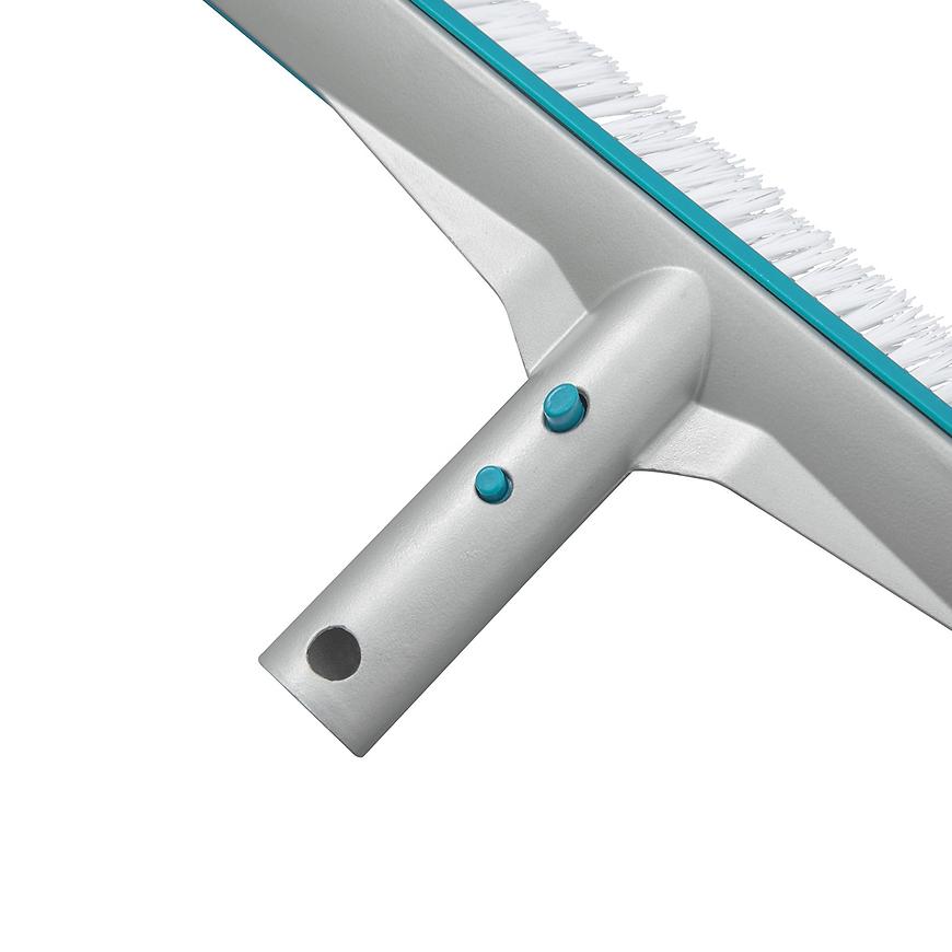 Metalowy uchwyt AquaBroom™ Deluxe został wykonany z wysokiej jakości materiałów, co zapewnia jego wytrzymałość i odporność na korozję. Specjalna powłoka ochronna dodatkowo przedłuża jego żywotność, nawet przy częstym kontakcie z wodą basenową i środkami chemicznymi.