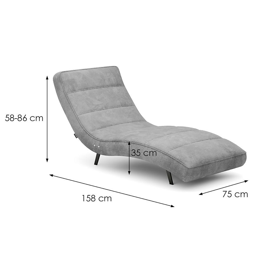 Komfort siedzenia zapewnia wypełnienie ze sprężyny falistej typu A połączonej z pianką, które gwarantuje odpowiednie podparcie dla ciała oraz długotrwałą wygodę użytkowania. Stabilna konstrukcja wsparta została na czarnych nogach, które dodają szezlongowi eleganckiego, nowoczesnego charakteru i ułatwiają utrzymanie porządku pod meblem.
