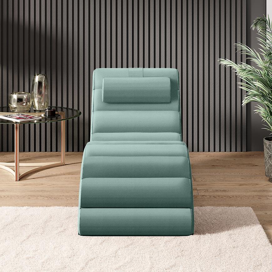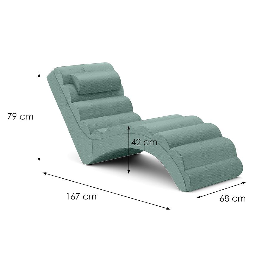 Szezlong został tapicerowany miękką i przyjemną w dotyku tkaniną, która nie tylko świetnie się prezentuje, ale także jest łatwa w utrzymaniu czystości. Kolor wprowadza do wnętrza harmonię i świeżość, doskonale komponując się zarówno z jasnymi, jak i ciemnymi aranżacjami.