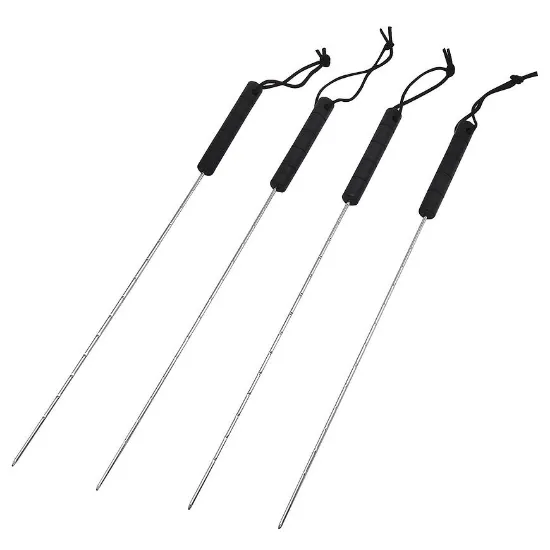 Praktyczny zestaw 4 metalowych szpikulców o długości 38 cm idealnie sprawdza się do przygotowywania szaszłyków mięsnych i warzywnych. Ułatwia równomierne grillowanie i wygodne obracanie potraw.