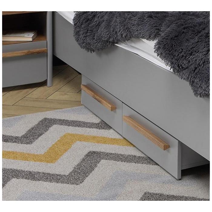 Kolekcja mebli młodzieżowych Surfinio to kompleksowa odpowiedź na potrzeby nastolatków. Odznacza się intersującym lecz prostym designem. Chłodny kolor szarości połączony został z kolorem dąb catania, dzięki temu pokój nabiera przytulności. Pojemna szafa i komoda z szufladami pomieszczę potrzebne rzeczy oraz pozwolą na utrzymanie porządku. System posiada duże wygodne uchwyty które są również elementem ozdobnym. W skład systemu Surfinio wchodzą: biurko, komoda z szufladami, regał, duża szafa ubraniowa, szafka nocna, półka wisząca oraz łóżko do którego można dodatkowo zakupić pojemną szufladę na pościel.