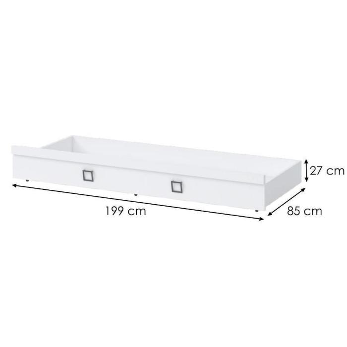 Szuflada na pościel lub do przechowywania. W jej wnętrzu znajdziesz dodatkowe miejsce do przechowywania, nie tylko pościeli, ale także koce czy inne akcesoria do spania.