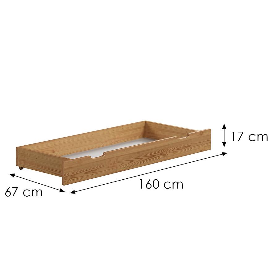 Dzięki wymiarom 160 cm szerokości, 67 cm głębokości i 17 cm wysokości, szuflada oferuje dużą pojemność, a jednocześnie łatwo dopasowuje się do innych mebli z kolekcji MIKOŁAJ.