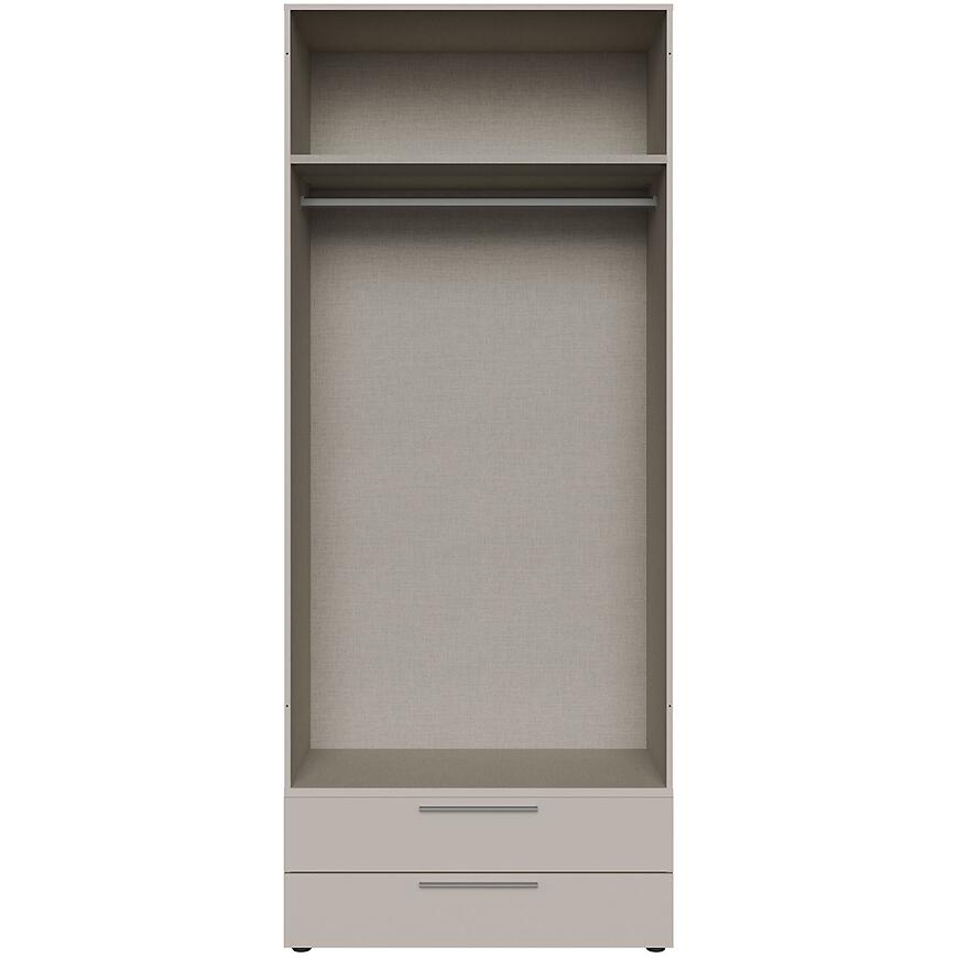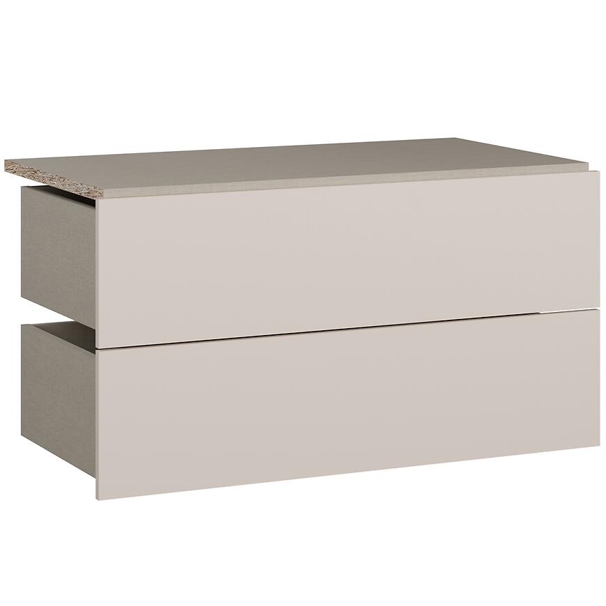 Matowe wykończenie nadaje szufladom subtelny, nowoczesny wygląd, harmonizujący z korpusami systemu Moduklix. Idealne do zestawienia z innymi elementami mebli, tworząc spójną i estetyczną zabudowę szafy.