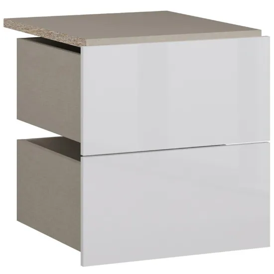 Wykonane z płyty wiórowej laminowanej, szuflady wyróżniają się odpornością na codzienne użytkowanie oraz łatwością czyszczenia. Wykończenie na wysoki połysk odbija światło, dodając wnętrzu nowoczesnego charakteru.