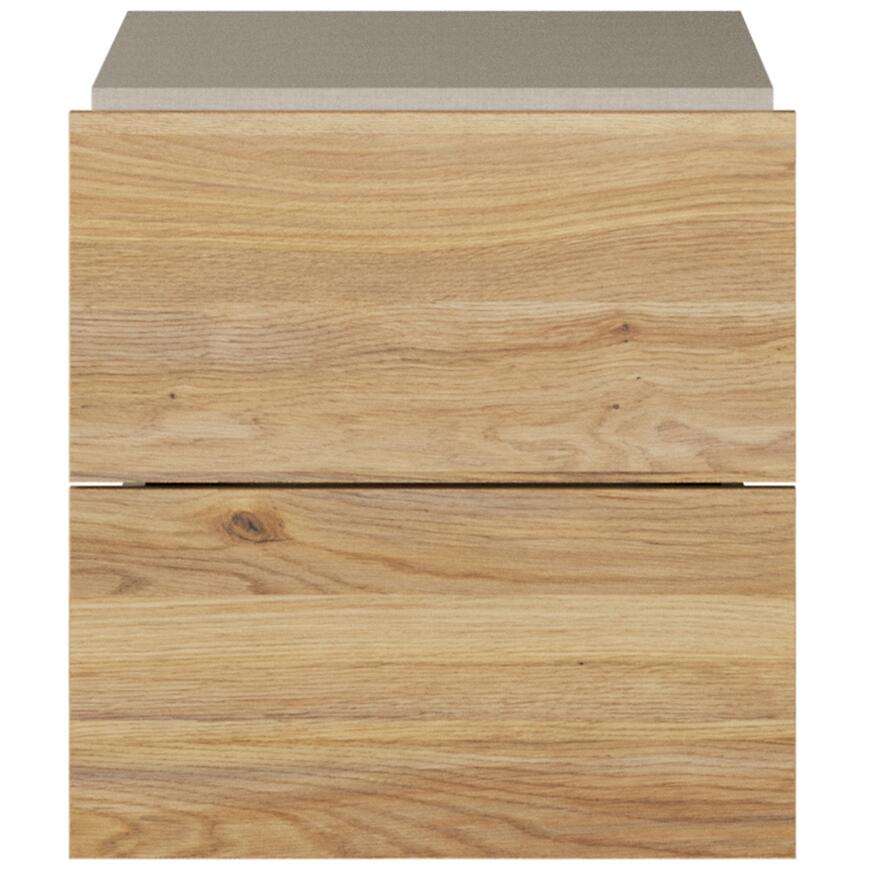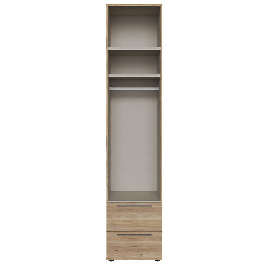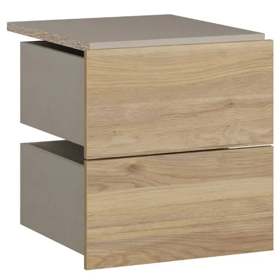 Zestaw dwóch szuflad pozwala wygodnie przechowywać ubrania, dokumenty i akcesoria. To praktyczne rozwiązanie łączące nowoczesny design z jasnym, drewnopodobnym akcentem.