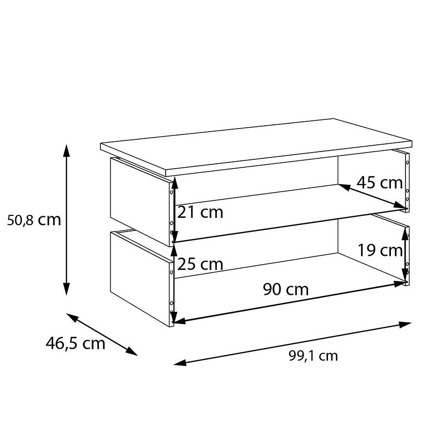 Zestaw dwóch szuflad umożliwia wygodne przechowywanie ubrań, dokumentów i akcesoriów, łącząc praktyczność z eleganckim, jasnym drewnopodobnym wykończeniem.