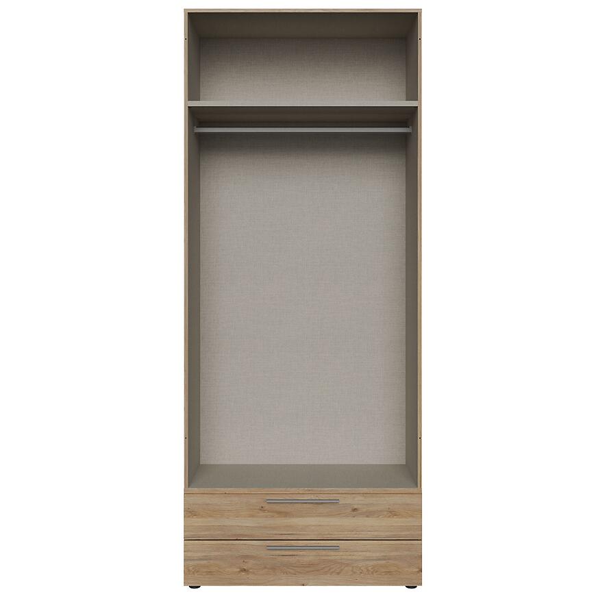 Szuflady 2 szt. Modulix do korpusu 99,1 cm w kolorze dąb Mauvella zapewniają dużą przestrzeń do przechowywania. Jasne, drewnopodobne wybarwienie wprowadza naturalny akcent i optycznie rozjaśnia wnętrze, idealnie pasując do nowoczesnych sypialni, garderób i salonów.
