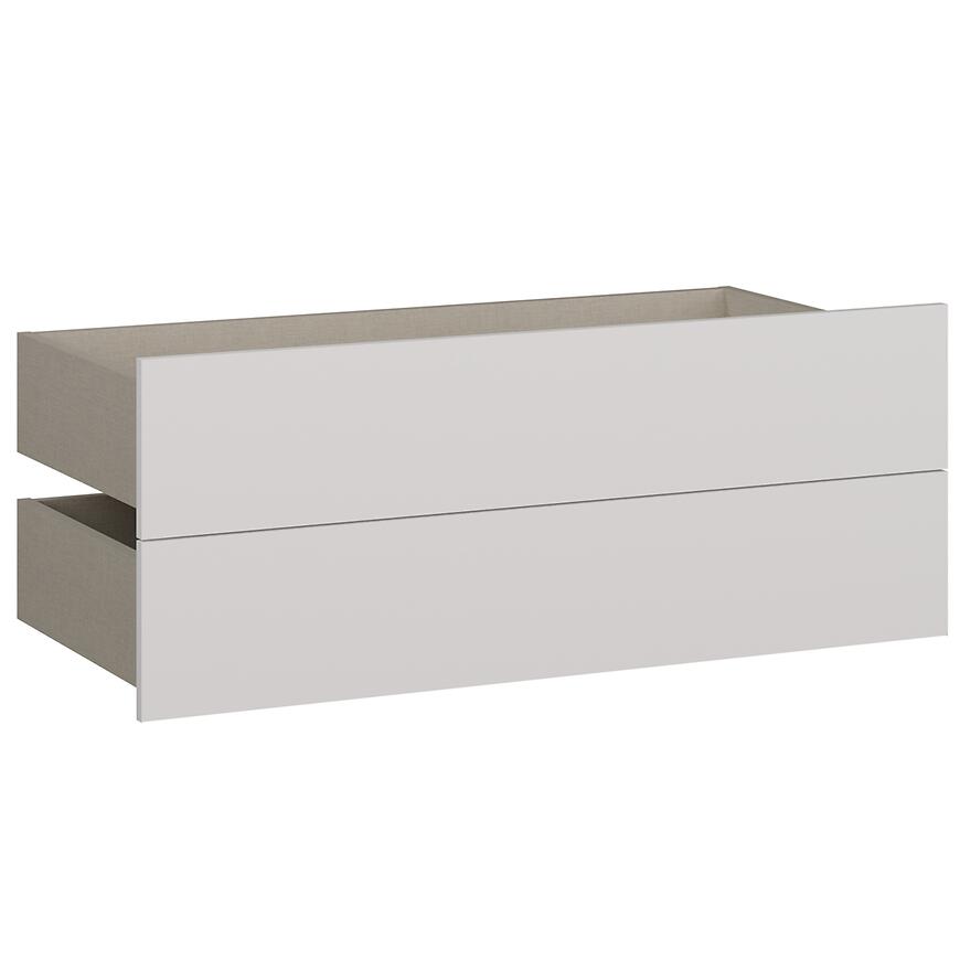 Zestaw dwóch szuflad pozwala wygodnie uporządkować ubrania, tekstylia, bieliznę czy dokumenty. To praktyczne rozwiązanie dla osób, które chcą maksymalnie wykorzystać przestrzeń i dodać wnętrzu nowoczesnego wyglądu.
