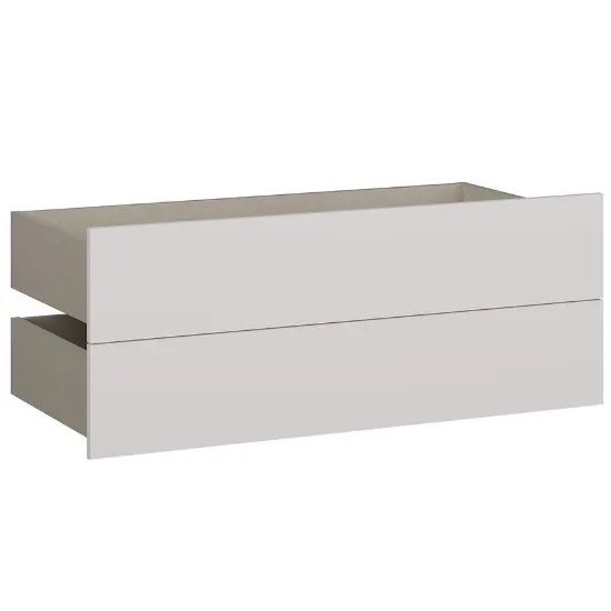 Wykonane z płyty wiórowej laminowanej, szuflady są odporne na codzienne użytkowanie i łatwe w czyszczeniu. Wykończenie na wysoki połysk odbija światło, nadając meblom lekkości i nowoczesnego charakteru.