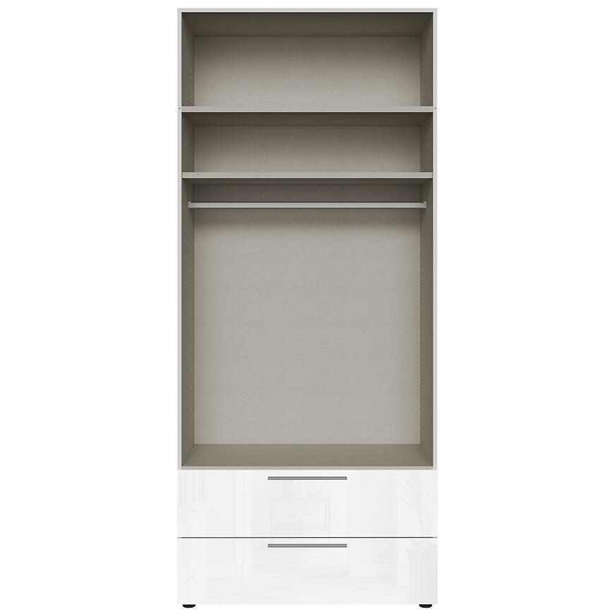 Szuflady 2 szt. Modulix do korpusu szafy 99,1 cm w kolorze biały połysk oferują maksymalną przestrzeń do przechowywania. Błyszczące wykończenie dodaje elegancji i optycznie powiększa wnętrze, świetnie komponując się z nowoczesnym stylem sypialni czy garderoby.