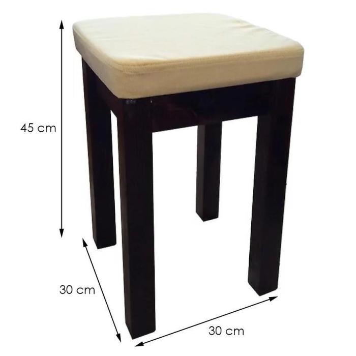 Taboret to funkcjonalny i praktyczny mebel. Klasyczny styl wpasuje się w niejedno wnętrze. Taboret będzie pasował do kuchni, jadalni, pokoju dziennego oraz innych pomieszczeń. Stelaż taboretu został wykonany z drewna. Wysokość do siedziska wynosi 45 cm.