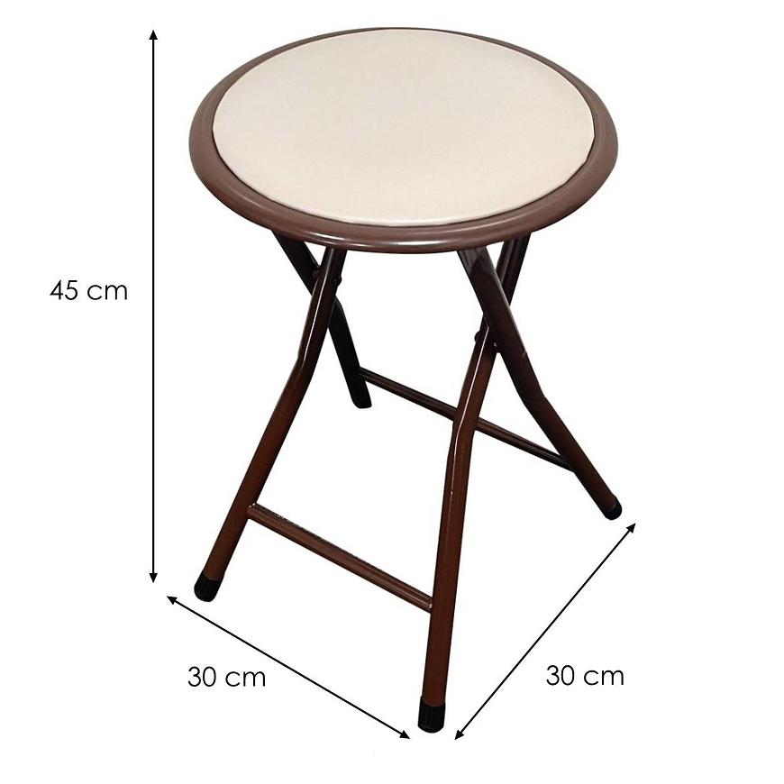 Rama oraz stelaż taboretu są wykonane z wytrzymałego metalu, co gwarantuje stabilność i trwałość produktu. Konstrukcja składana sprawia, że taboret jest łatwy do przechowywania, co jest szczególnie praktyczne w przypadku ograniczonej przestrzeni. Solidne materiały użyte do produkcji zapewniają nie tylko estetykę, ale także funkcjonalność, co czyni go idealnym wyborem do różnych zastosowań.