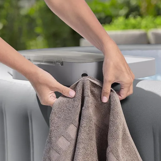 Ciesz się jeszcze większym komfortem podczas relaksu w swoim jacuzzi dzięki tacy na akcesoria 4 w 1 Lay-Z-Spa® 60337. Zapewnia ona wygodne miejsce na napoje, ręczniki, tablet czy inne niezbędne przedmioty, które chcesz mieć przy sobie podczas kąpieli.