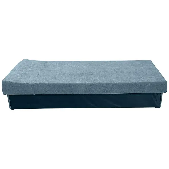 Tapczan został wykończony trwałą, przyjemną w dotyku tkaniną, która świetnie się prezentuje i jest łatwa w utrzymaniu czystości. Wewnątrz zastosowano sprężynę bonell, co gwarantuje odpowiednie podparcie ciała i komfort snu. Praktyczny schowek na pościel pozwala zaoszczędzić miejsce i zachować porządek w pokoju. Całość dopełniają solidne, czarne nogi, które podkreślają klasyczny charakter mebla i zapewniają stabilność konstrukcji.