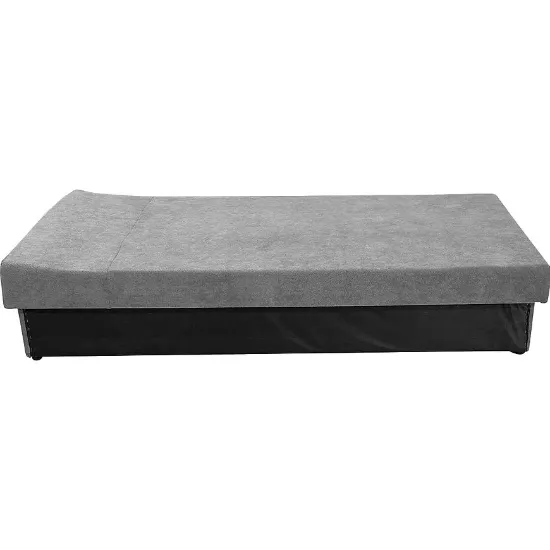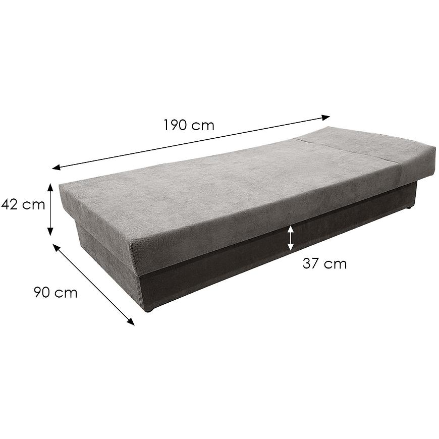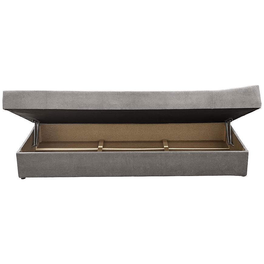 Tapczan został wykończony trwałą, przyjemną w dotyku tkaniną, która świetnie się prezentuje i jest łatwa w utrzymaniu czystości. Wewnątrz zastosowano sprężynę bonell, co gwarantuje odpowiednie podparcie ciała i komfort snu. Praktyczny schowek na pościel pozwala zaoszczędzić miejsce i zachować porządek w pokoju. Całość dopełniają solidne, czarne nogi, które podkreślają klasyczny charakter mebla i zapewniają stabilność konstrukcji.