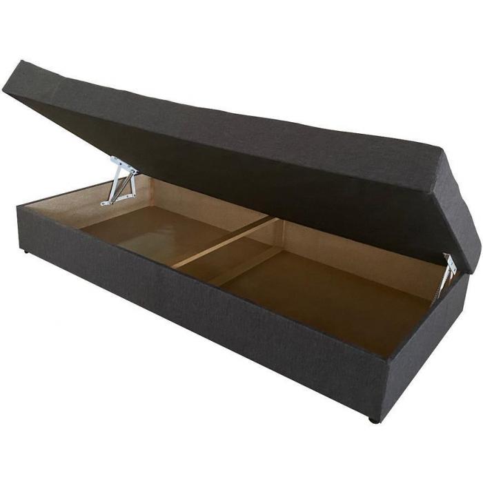 Mebel został wypełniony sprężyną bonell, co gwarantuje stabilne podparcie podczas siedzenia oraz snu. Wysokość siedziska wynosząca 37 cm oraz głębokość 90 cm zapewniają wygodną i ergonomiczną pozycję do codziennego wypoczynku. Tapczan nie posiada regulowanego zagłówka ani poduszek w komplecie, co podkreśla jego prostą, trwałą konstrukcję.