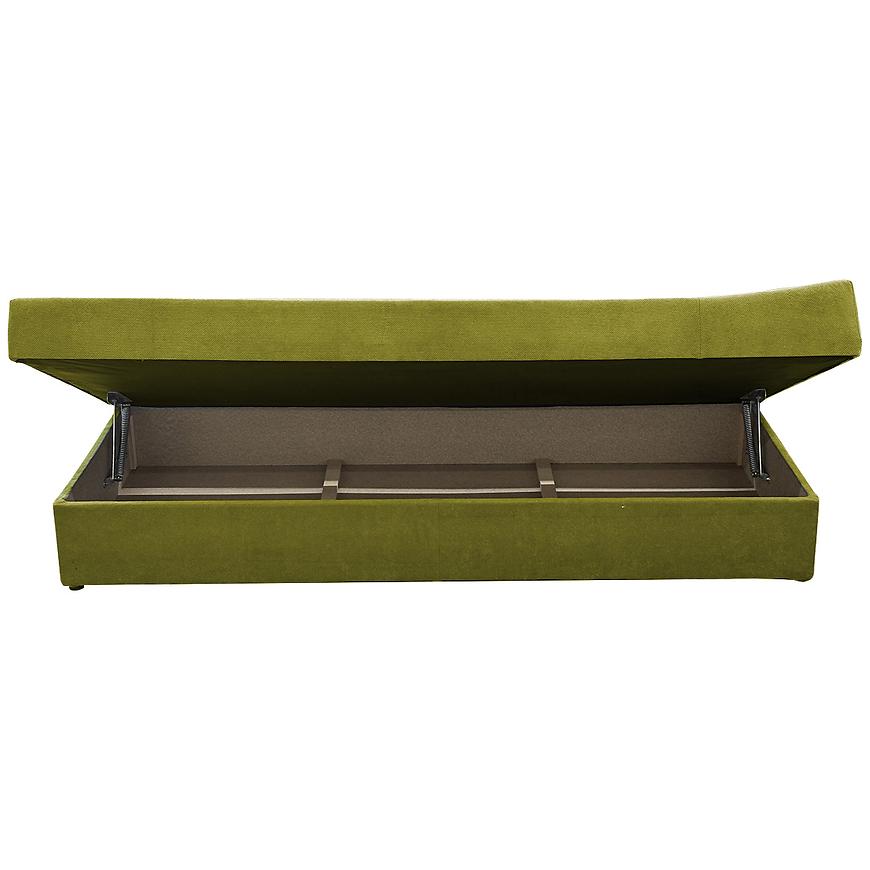Tapczan został wykończony trwałą, przyjemną w dotyku tkaniną, która świetnie się prezentuje i jest łatwa w utrzymaniu czystości. Wewnątrz zastosowano sprężynę bonell, co gwarantuje odpowiednie podparcie ciała i komfort snu. Praktyczny schowek na pościel pozwala zaoszczędzić miejsce i zachować porządek w pokoju. Całość dopełniają solidne, czarne nogi, które podkreślają klasyczny charakter mebla i zapewniają stabilność konstrukcji.