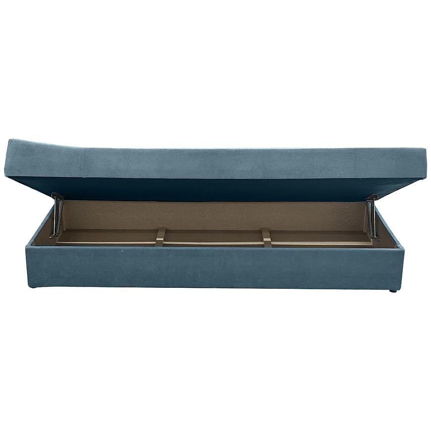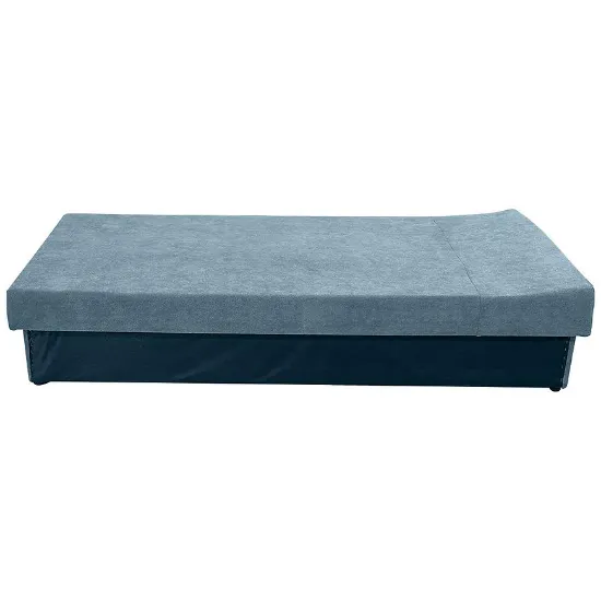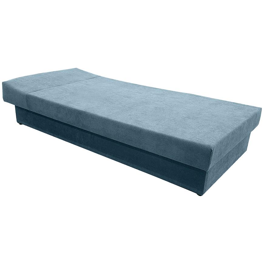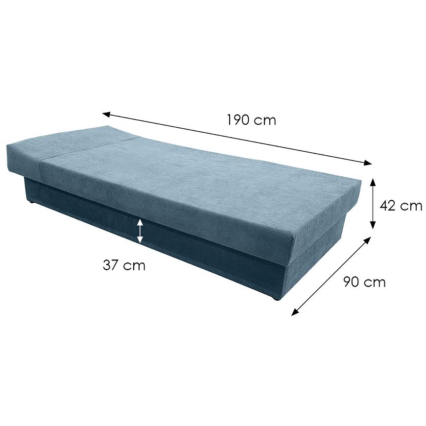 Tapczan został wykończony trwałą, przyjemną w dotyku tkaniną, która świetnie się prezentuje i jest łatwa w utrzymaniu czystości. Wewnątrz zastosowano sprężynę bonell, co gwarantuje odpowiednie podparcie ciała i komfort snu. Praktyczny schowek na pościel pozwala zaoszczędzić miejsce i zachować porządek w pokoju. Całość dopełniają solidne, czarne nogi, które podkreślają klasyczny charakter mebla i zapewniają stabilność konstrukcji.