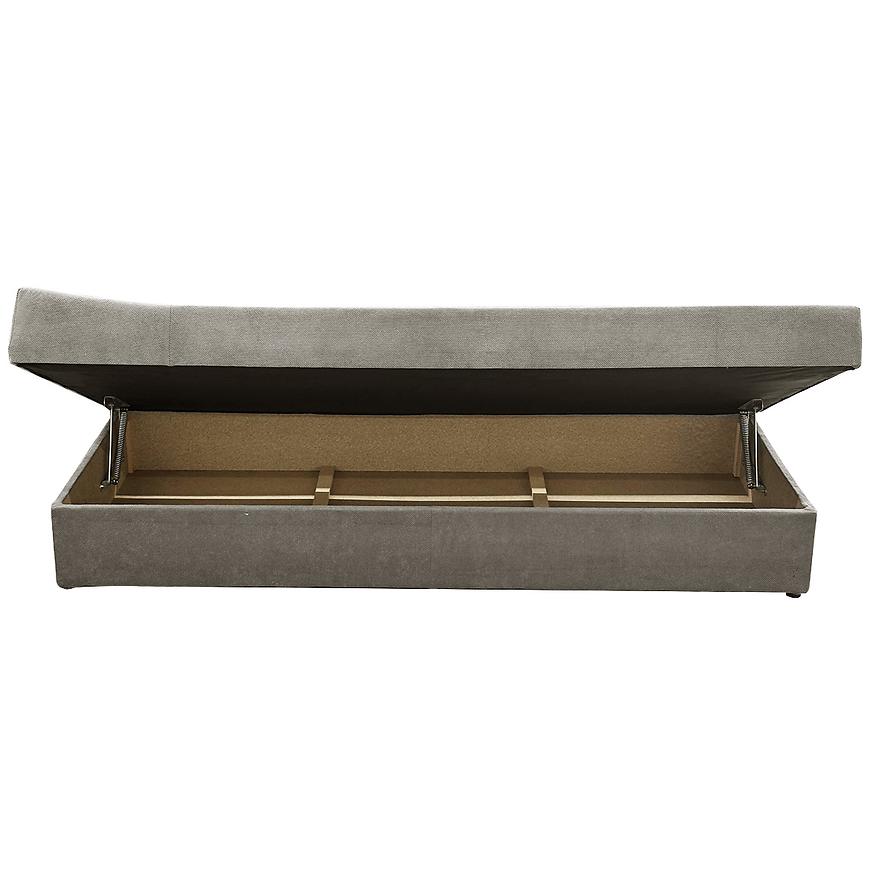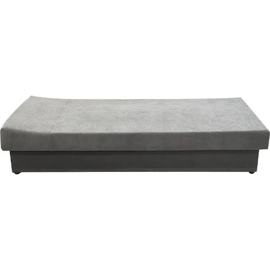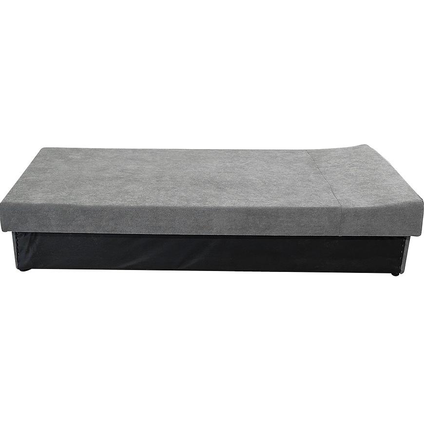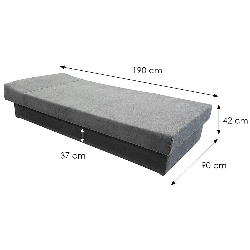 Tapczan został wykończony trwałą, przyjemną w dotyku tkaniną, która świetnie się prezentuje i jest łatwa w utrzymaniu czystości. Wewnątrz zastosowano sprężynę bonell, co gwarantuje odpowiednie podparcie ciała i komfort snu. Praktyczny schowek na pościel pozwala zaoszczędzić miejsce i zachować porządek w pokoju. Całość dopełniają solidne, czarne nogi, które podkreślają klasyczny charakter mebla i zapewniają stabilność konstrukcji.