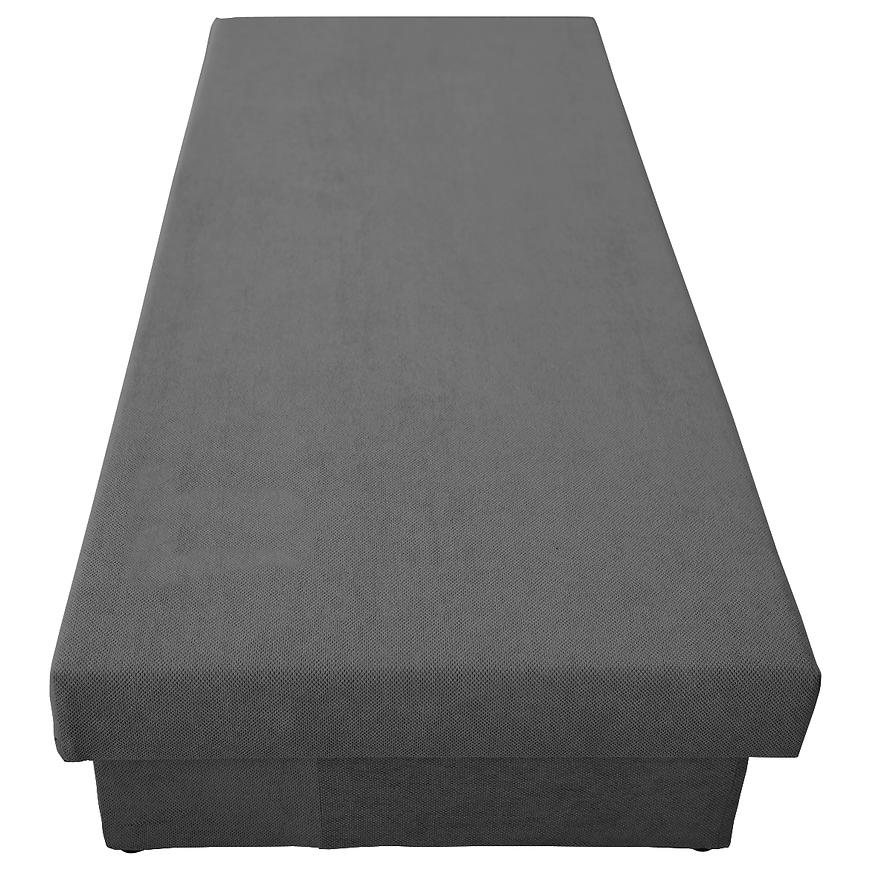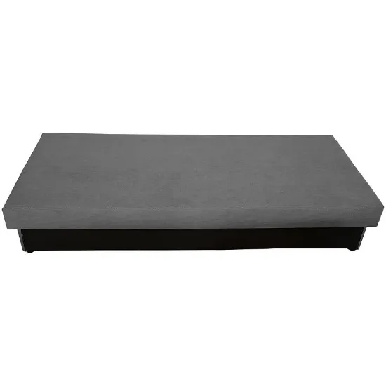 Szara tapicerka nadaje pokojowi stonowany, elegancki wygląd, który łatwo wkomponować w różnorodne aranżacje wnętrz. Prosta forma tapczanu pozwala na dopasowanie go zarówno do klasycznych, jak i nowoczesnych wnętrz. Brak nóg podkreśla kompaktowy charakter mebla i ułatwia jego ustawienie w pokoju.