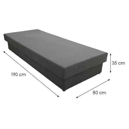 Mebel został wyposażony w sprężyny bonell, które gwarantują stabilne podparcie podczas siedzenia i snu. Wysokość siedziska wynosząca 35 cm oraz głębokość 35 cm zapewniają wygodną pozycję do relaksu. Tapczan nie posiada automatu do rozkładania ani poduszek w komplecie, co czyni jego konstrukcję prostą, solidną i łatwą w codziennym użytkowaniu.
