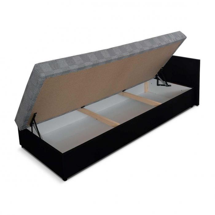Mebel posiada funkcjonalny schowek na pościel, pozwalający przechowywać kołdry, poduszki i pościel w uporządkowany sposób. To szczególnie przydatne w pokojach młodzieżowych, gdzie każda przestrzeń do przechowywania jest na wagę złota. Schowek ułatwia utrzymanie porządku i zwiększa funkcjonalność tapczanu.