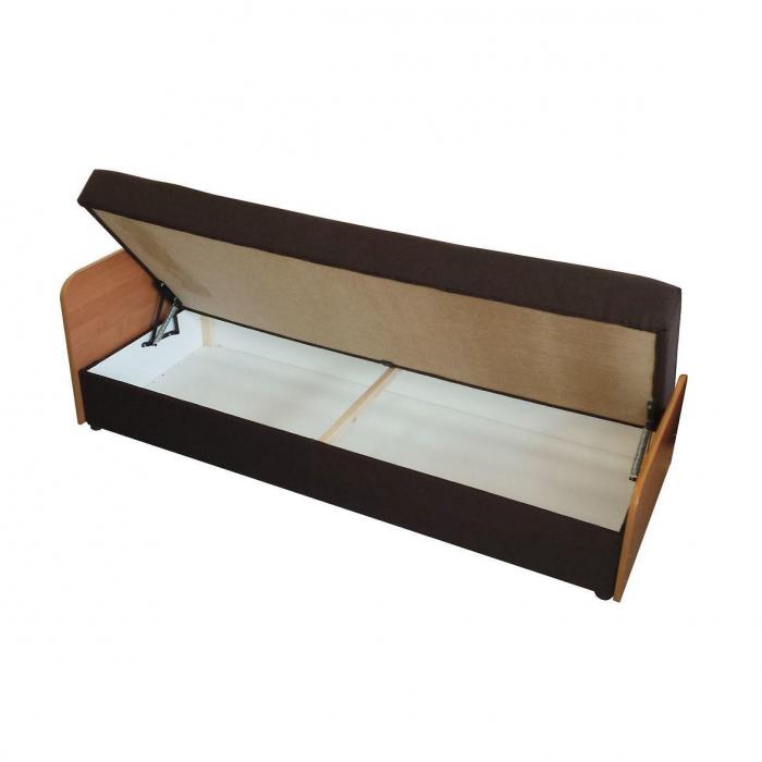 Ten klasyczny wygodny tapczan to idealna propozycja do niewielkiego pokoju dziecięcego lub młodzieżowego. Zastosowane w siedzisku sprężyny typu bonell pozwalają na komfortowy wypoczynek. Tapczan posiada praktyczny pojemnik na pościel który stanowi dodatkowe miejsce do przechowywanie pościeli pozwalający zachować ład w pomieszczeniu. Tapczan może służyć jako miejsce wypoczynku jak również jednoosobowe miejsce do spania, bez konieczności rozkładania mebla. Powierzchnia spania tapczanu Jacek wynosi 80x200 cm. Tapczan Jacek tapicerowany jest tkaniną w kolorze brązowym, boki w kolorze olchowym. Wysokość zagłówka to 63 cm, całkowita szerokość tapczanu wynosi 205 cm.