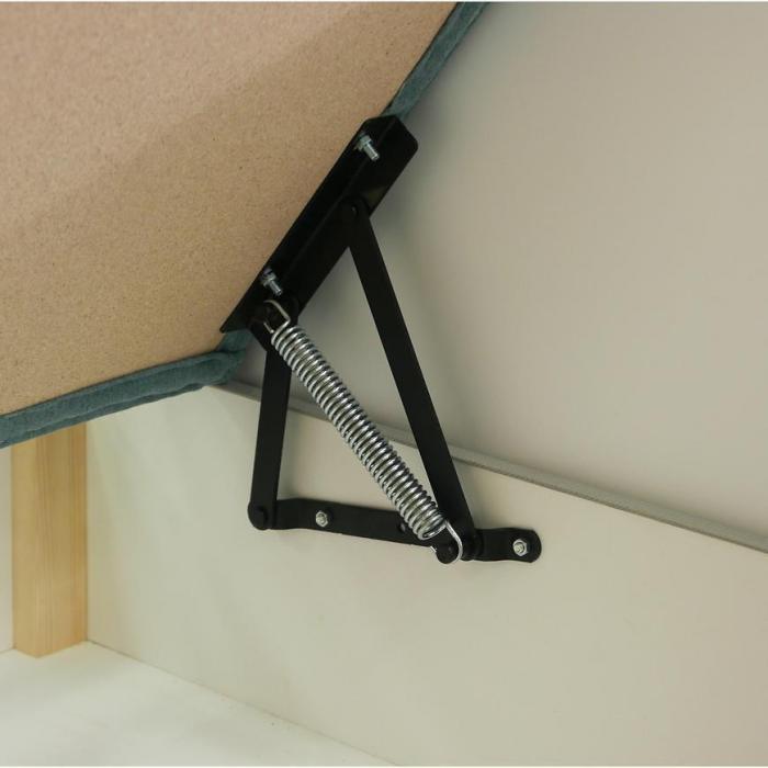 Mebel został wyposażony w sprężyny bonell, które zapewniają stabilne i komfortowe podparcie podczas siedzenia oraz snu. Wysokość siedziska wynosząca 40 cm oraz głębokość 80 cm gwarantują wygodną pozycję do codziennego relaksu. Tapczan nie posiada regulowanego zagłówka ani oparcia, co podkreśla jego prostą i funkcjonalną konstrukcję.