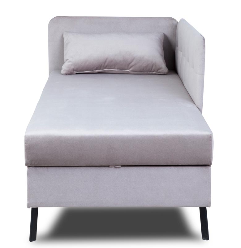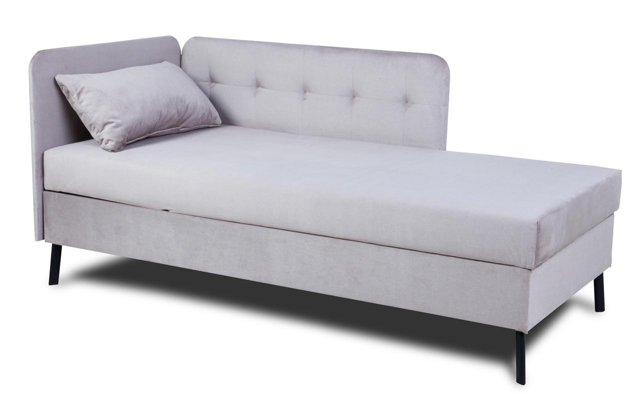 Cztery metalowe nóżki w eleganckim czarnym kolorze dodają tapczanowi stabilności i nowoczesnego wyglądu. Stanowią one także praktyczne rozwiązanie, które ułatwia utrzymanie podłogi w czystości.