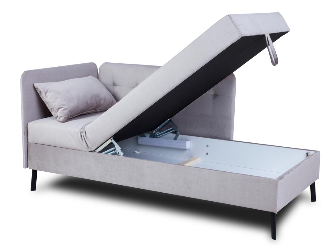 Powierzchnia spania o wymiarach 90x200 cm to idealne miejsce dla jednej osoby do komfortowego snu. Tapczan Jeff Lux zapewnia odpowiednią ilość przestrzeni do relaksu, a jednocześnie nie zajmuje nadmiernie miejsca w pomieszczeniu.