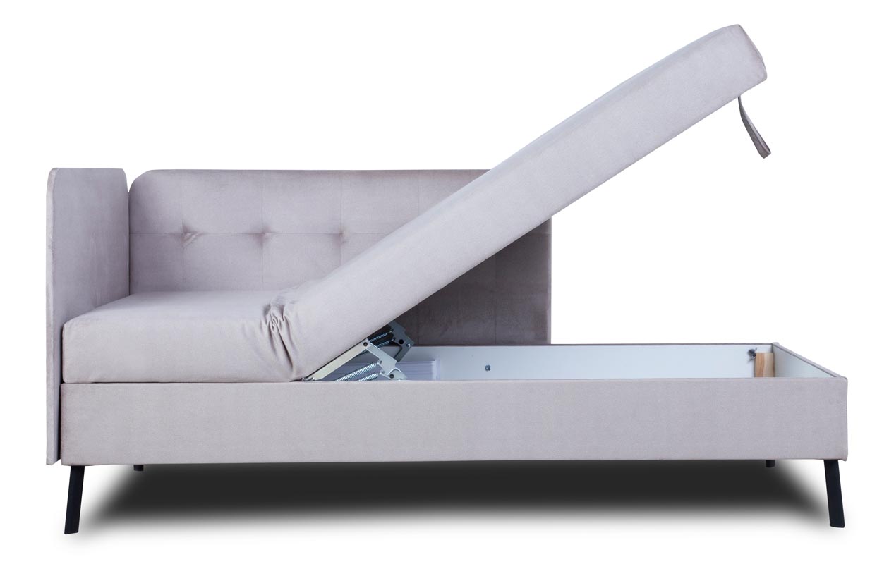 Wnętrze tapczanu zostało zaprojektowane z myślą o najwyższym komforcie. Zastosowanie sprężyny bonellowej oraz pianki gwarantuje równomierną podparcie ciała i maksymalny relaks podczas snu i wypoczynku. Dodatkowo, tapicerka tkaniną Fantasy Velvet w delikatnym odcieniu beżu jest nie tylko przyjemna w dotyku, ale także wysoce odporna na ścieranie, co zapewni długotrwałą trwałość produktu.