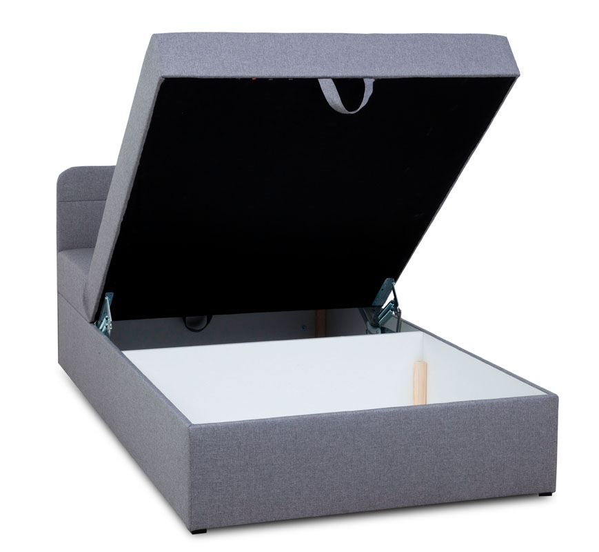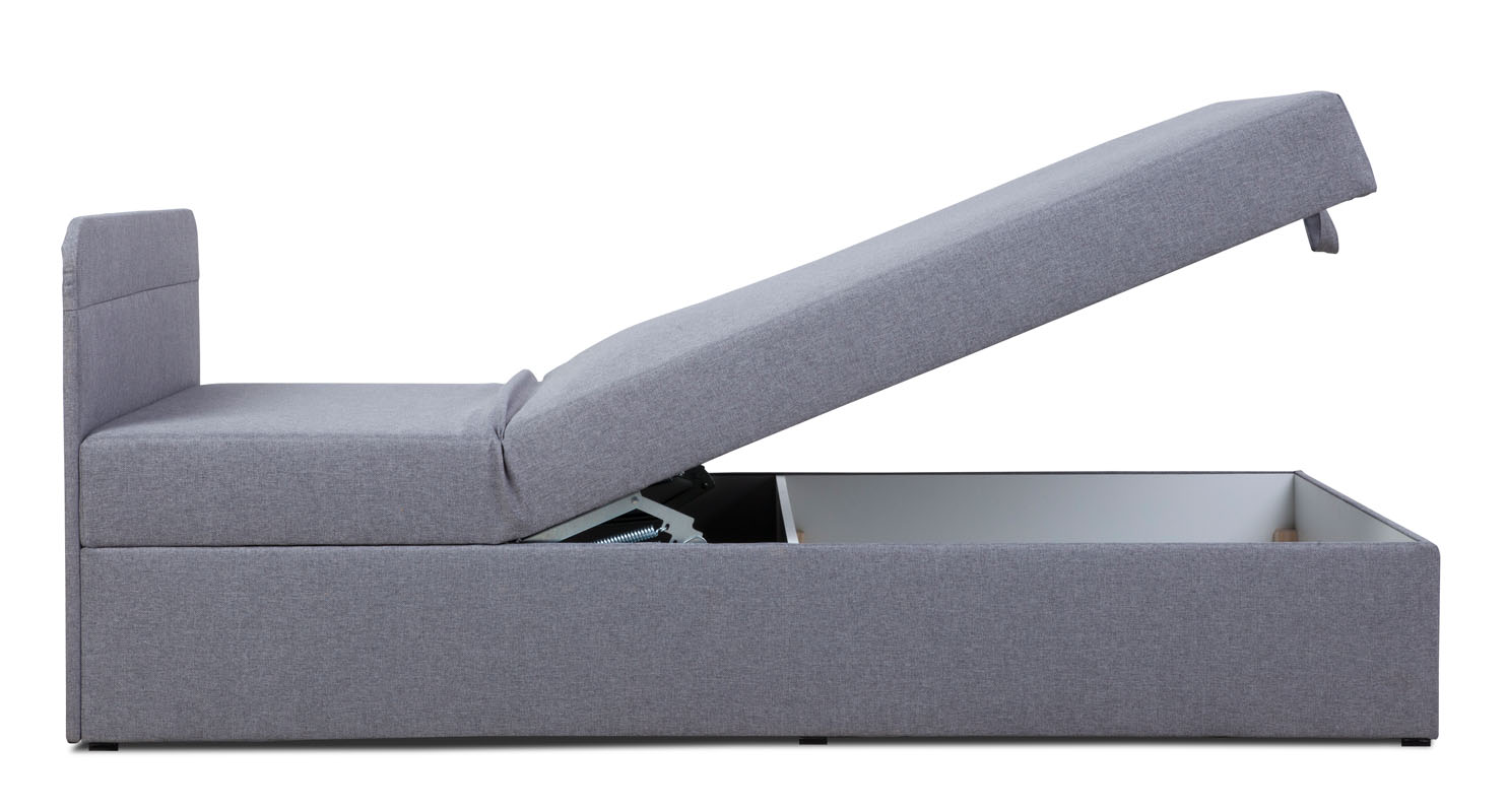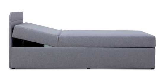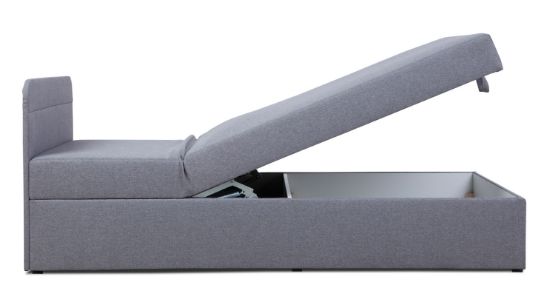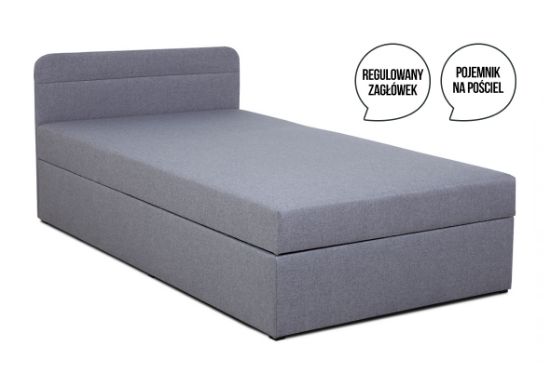 Tapczan Max wyróżnia się prostym designem. Najważniejszą cechą tapczanu Max jest jednak jego funkcjonalność. To kompaktowy mebel, na którym można wygodnie się wyspać. Komfort zapewniają przede wszystkim umieszczona w siedzisku sprężyna bonelowa oraz pianka T25. Tapczan posiada regulowany zagłówek. Ten mebel to idealne rozwiązanie do pokoju gościnnego lub pokoju nastolatka. Duża skrzynia pomieści wszystkie pościele i poduszki, dzięki czemu łatwo będzie zachować porządek. Powierzchnia spania wynosi 110x200, wysokość siedziska od podłogi 47 cm. Mebel pakowany jest jako jedna paczka o wymiarach 201x111x50 cm.