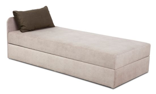 Tapczan Pinko został wykonany w tkaninie Zetta w eleganckim, beżowym kolorze. Zetta to rodzaj miękkiego w dotyku aksamitu, który dodaje meblowi luksusowego charakteru. Beżowy odcień jest uniwersalny i doskonale wpasuje się w różnorodne aranżacje wnętrz, dodając im ciepła i elegancji. Dodatkowo, aksamitna tkanina jest przyjemna w dotyku, co podnosi komfort użytkowania mebla.