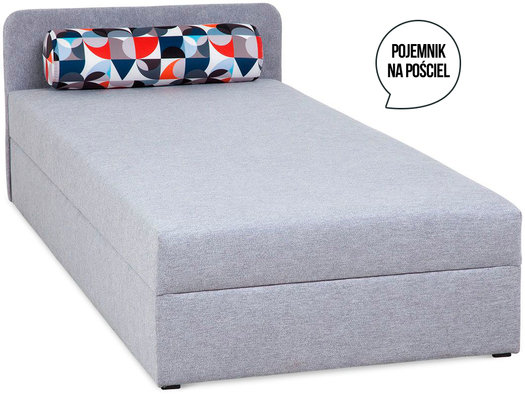 Tapczan Pixel wyróżnia się ciekawym designem. Połączenie modnej szarości z kontrastową tkanina na poduszce przykuwa wzrok. Taki niebanalny detal nada wnętrzu charakteru. Najważniejszą cechą nowoczesnego tapczanu Pixel jest jednak jego funkcjonalność. To kompaktowy mebel, na którym można wygodnie się wyspać. Komfort zapewniają przede wszystkim umieszczona w siedzisku sprężyna bonelowa. Ten mebel to idealne rozwiązanie do pokoju gościnnego lub pokoju nastolatka. Duża skrzynia pomieści wszystkie pościele i poduszki, dzięki czemu łatwo będzie zachować porządek. Dołączona do kompletu poduszka z wyrazistym wzorem ożywia całość, nadając wnętrzu nietuzinkowego charakteru.