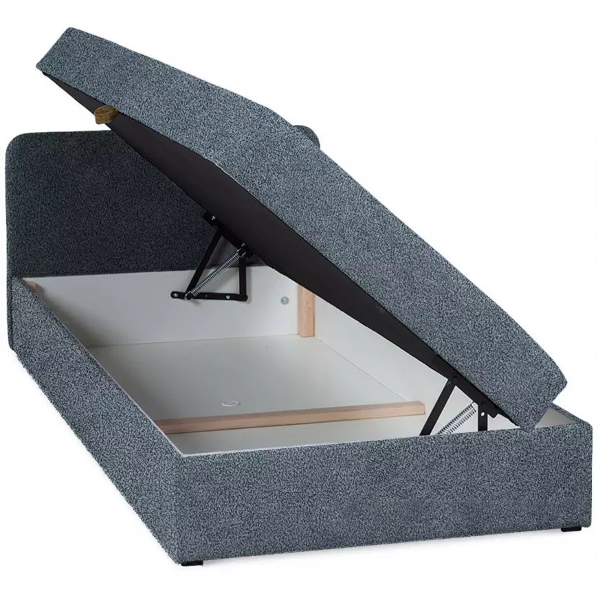 Praktycznym atutem Tapczanu Sizer Alfa 81 jest pojemny schowek na pościel, umożliwiający przechowywanie kołder, poduszek czy koców. Dzięki temu tapczan pomaga utrzymać porządek w pomieszczeniu, łącząc wygodę i funkcjonalność w jednym meblu.