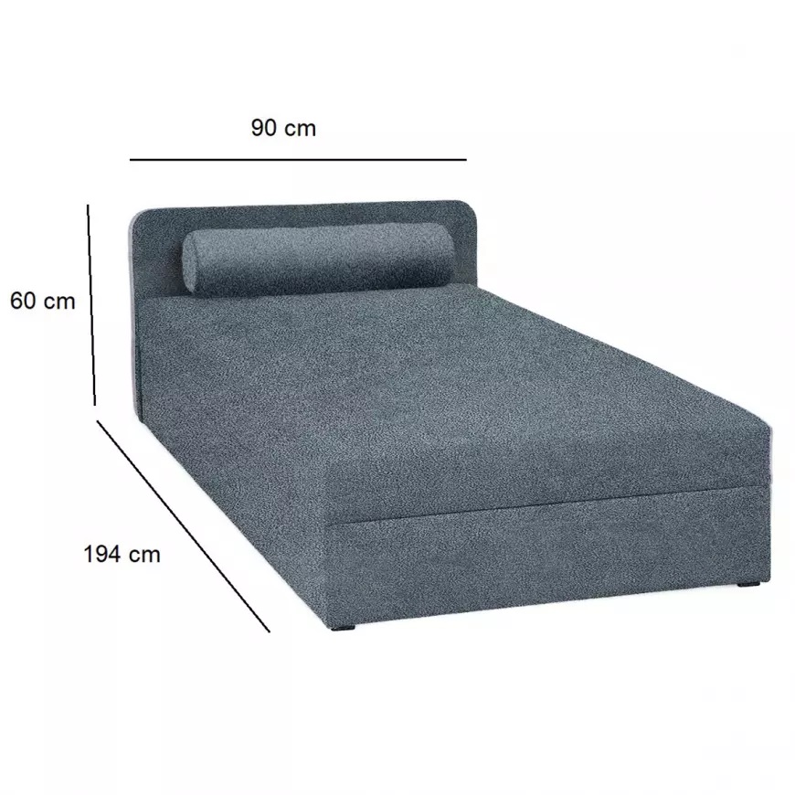 Tapczan został obity trwałą tkaniną w kolorze niebieskim, która łatwo dopasowuje się do różnych aranżacji wnętrz. Solidne czarne nóżki zapewniają stabilność, a nowoczesny design sprawia, że tapczan Sizer Alfa 81 doskonale komponuje się zarówno w klasycznych, jak i nowoczesnych aranżacjach.
