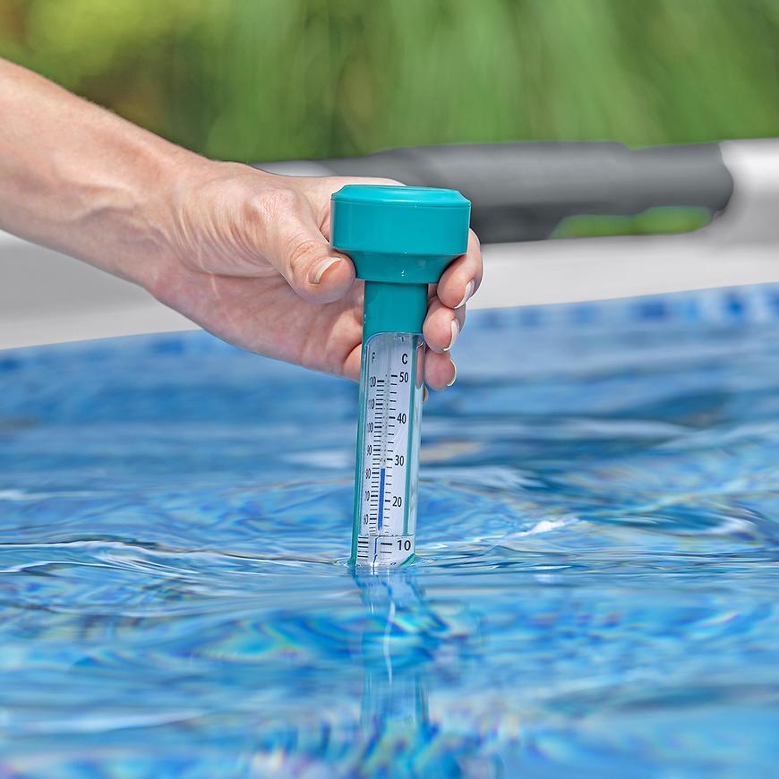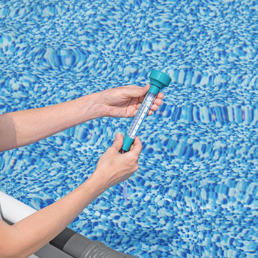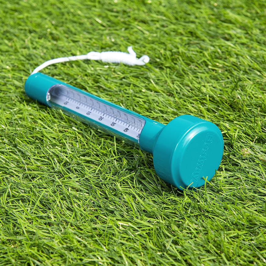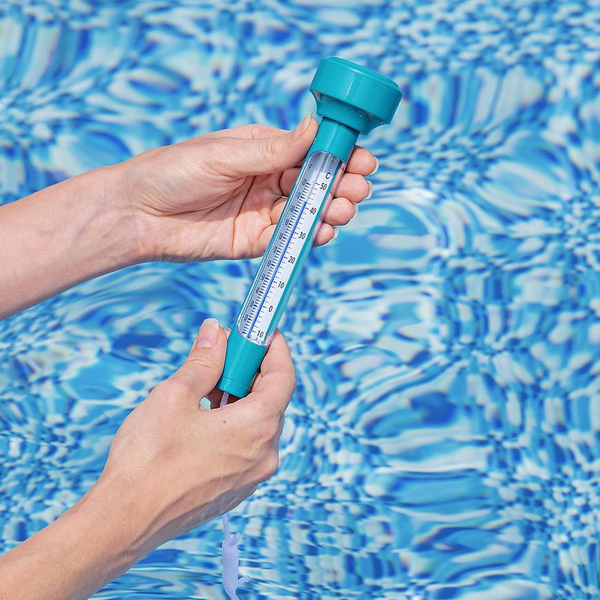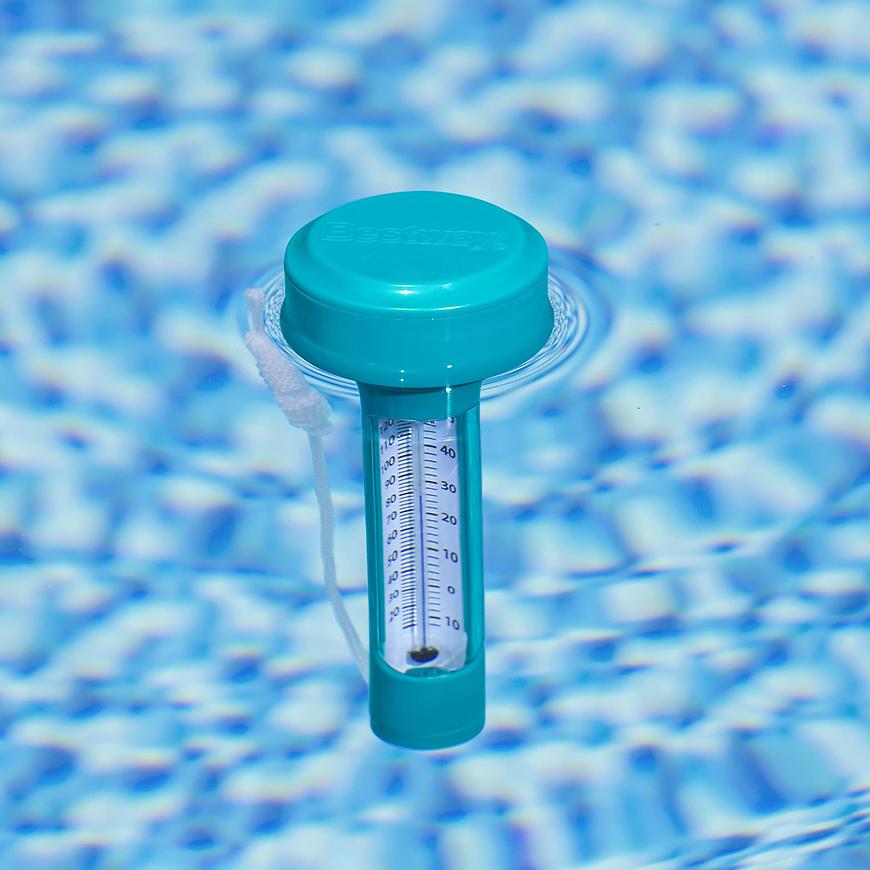 Dzięki pływającej konstrukcji termometr zawsze unosi się na powierzchni wody, zapewniając łatwy dostęp. Dołączony sznurek umożliwia przymocowanie termometru w jednym miejscu, aby nie dryfował po całym basenie.
