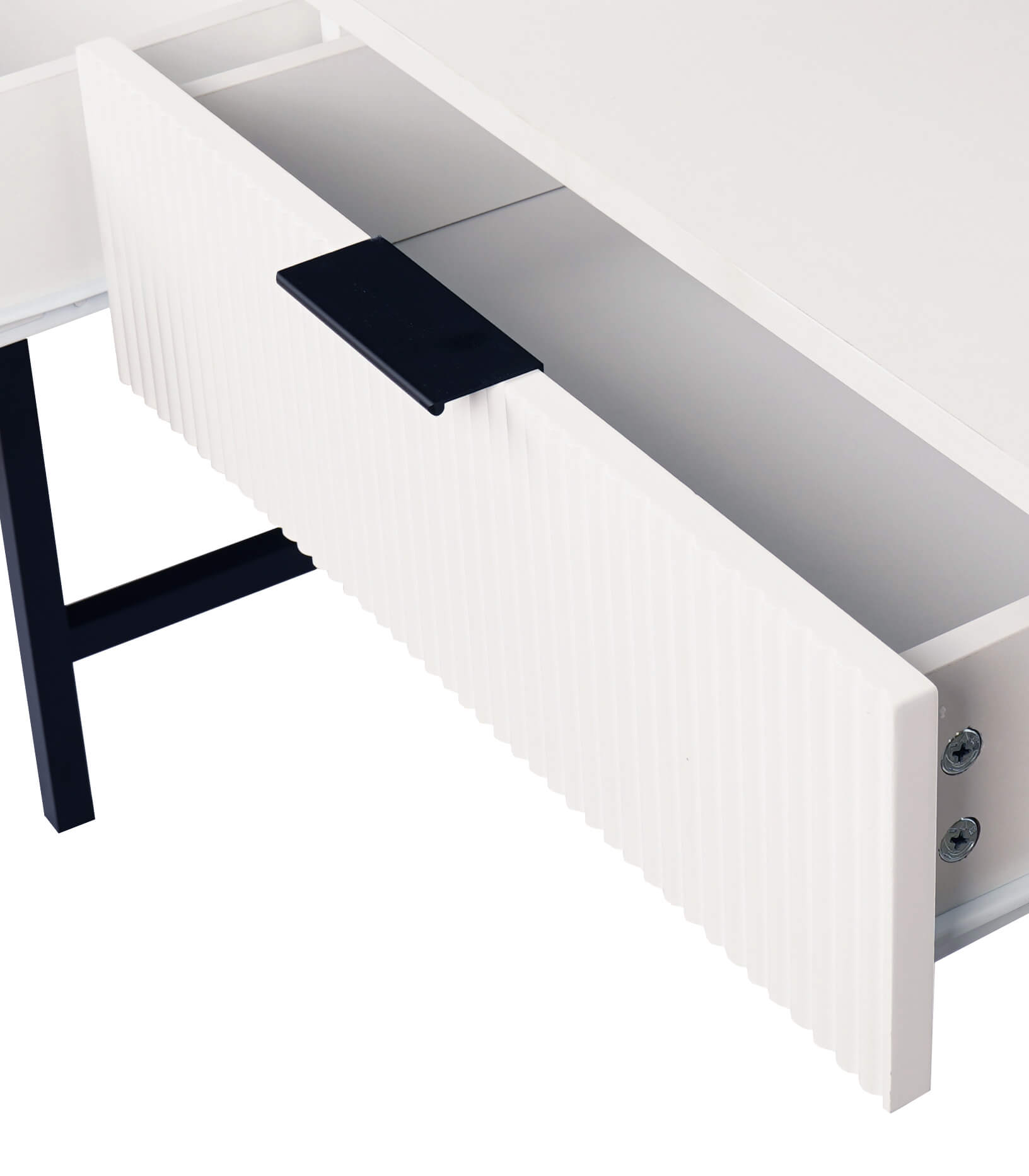 Toaletka Cleo to elegancki i funkcjonalny mebel, który doskonale wpasuje się w wystrój każdej sypialni czy garderoby. Wykonana z wysokiej jakości płyty wiórowej laminowanej w klasycznym białym kolorze, zachwyca swoją prostotą i nowoczesnym stylem. Matowe wykończenie nadaje jej subtelnego uroku, który idealnie współgra z minimalistycznym designem wnętrz.