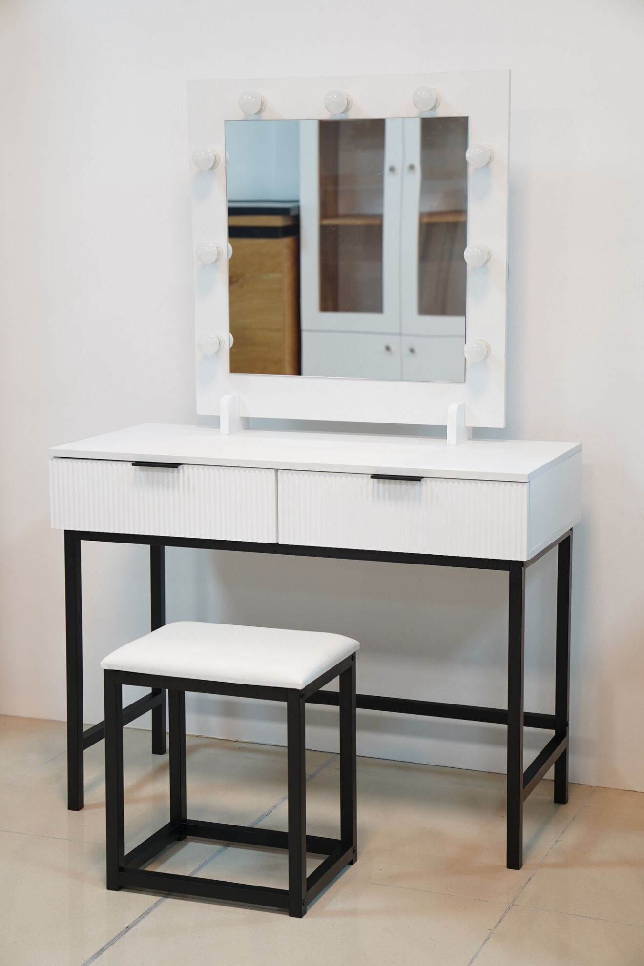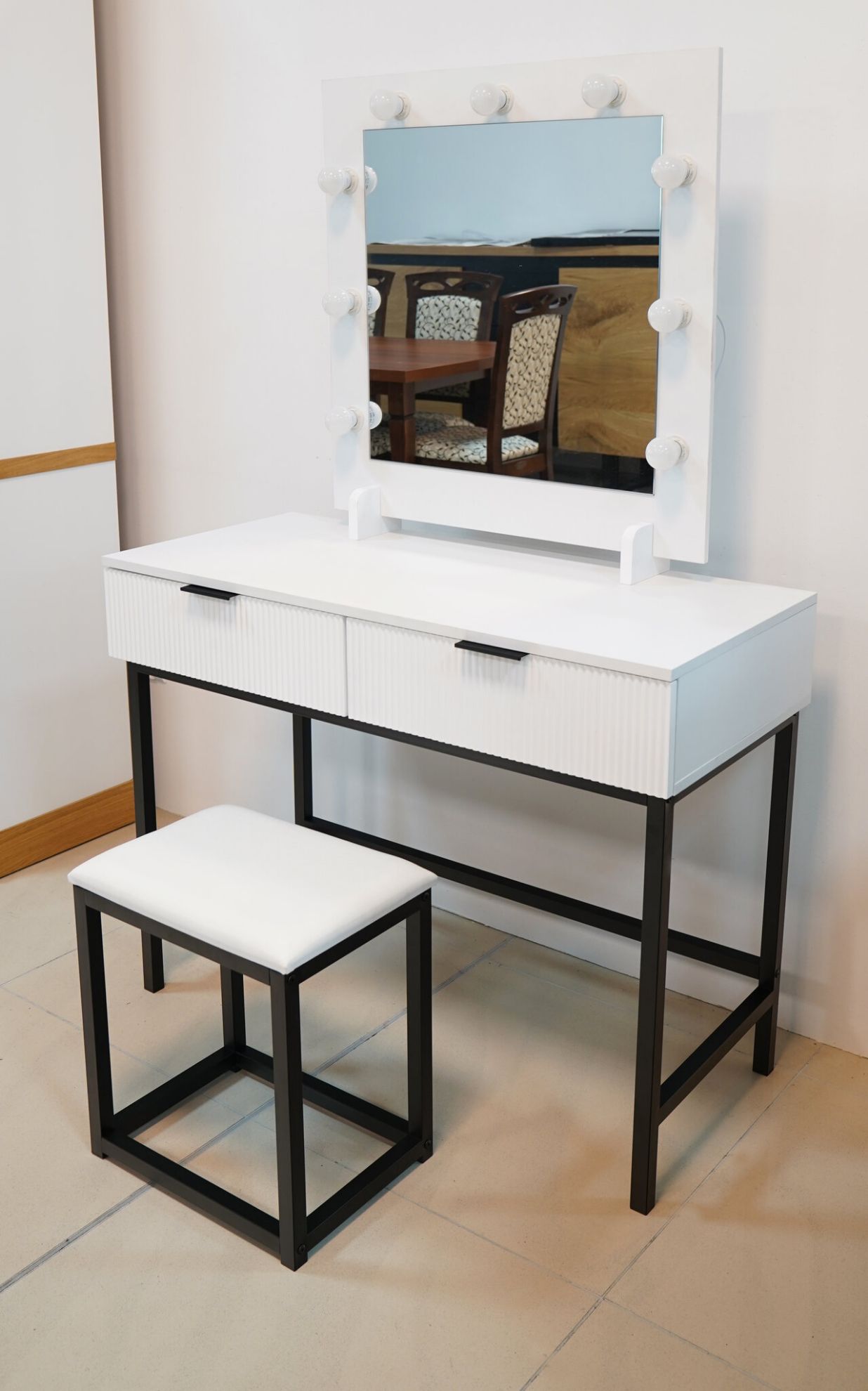 W zestawie z toaletką znajduje się lustro, które jest nieodłącznym elementem każdego kącika makijażowego. Odpowiednio dobrane, ułatwia codzienną pielęgnację i pozwala na precyzyjne wykonanie makijażu. Lustro jest proporcjonalne do rozmiarów toaletki, co sprawia, że całość prezentuje się harmonijnie i spójnie.