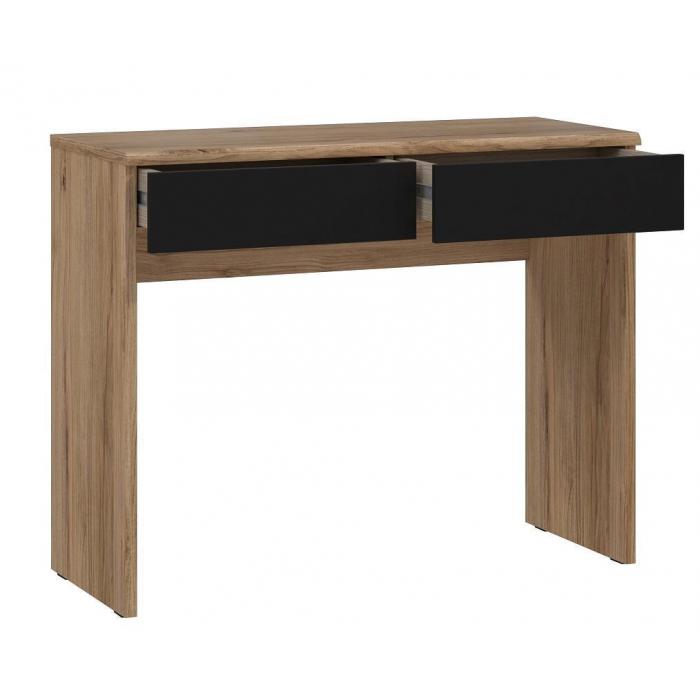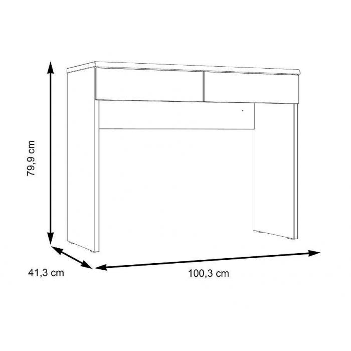 Elegancka toaletka z przestronnym blatem i dwoma szufladami to idealne miejsce, by zadbać o swój wygląd i przechowywać kosmetyki w estetyczny sposób.