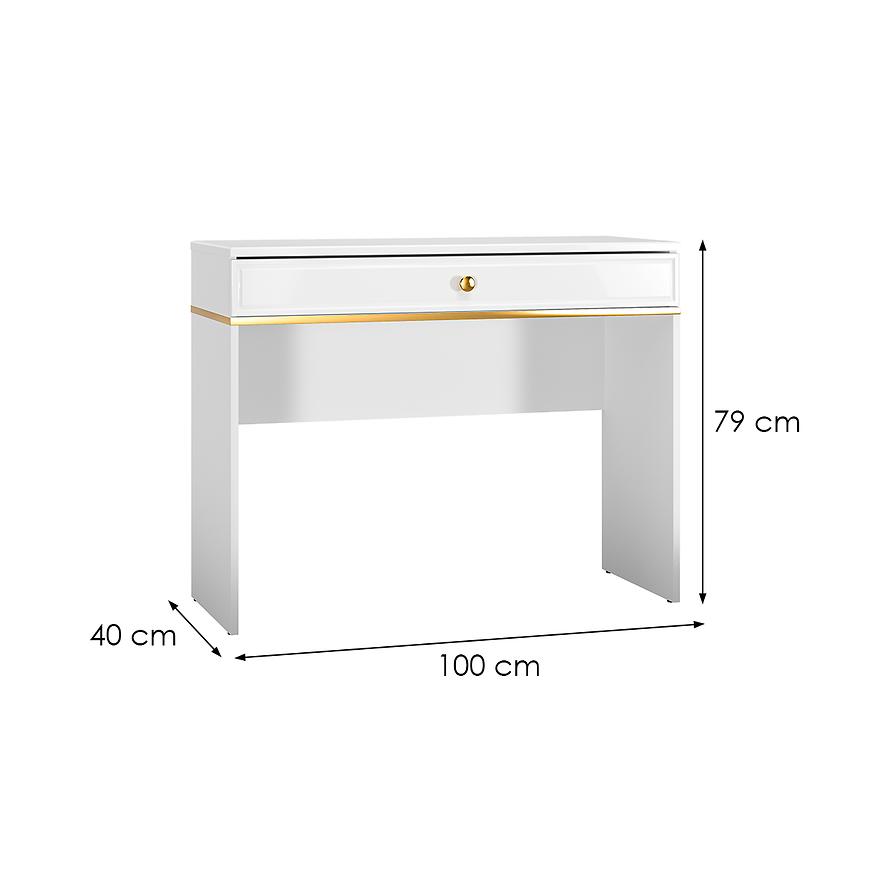 Toaletka Goldin 10 to wyjątkowy mebel, który łączy w sobie funkcjonalność i elegancję, wprowadzając nowoczesny styl do Twojej przestrzeni. Z szerokością 100 cm, wysokością 79 cm i głębokością 40 cm, ta jednodrzwiowa toaletka staje się centralnym punktem Twojej strefy domowego spa.