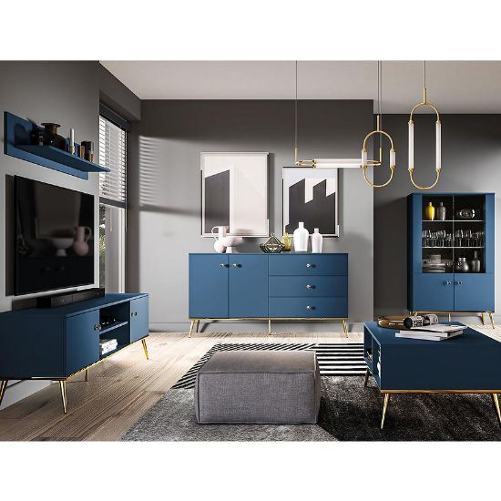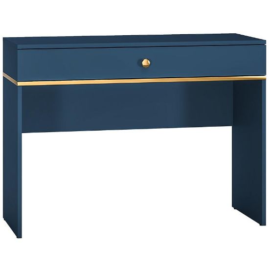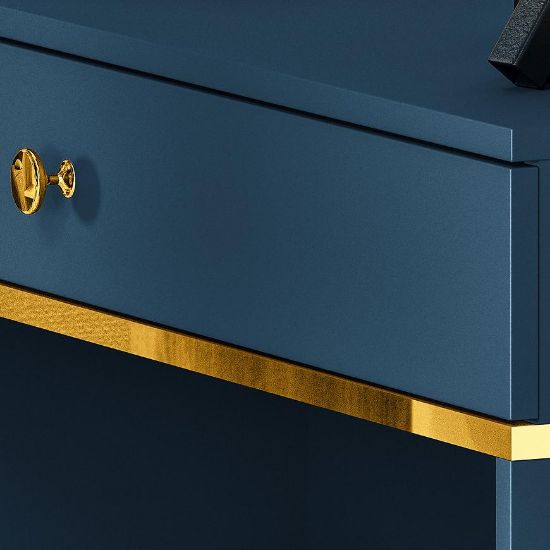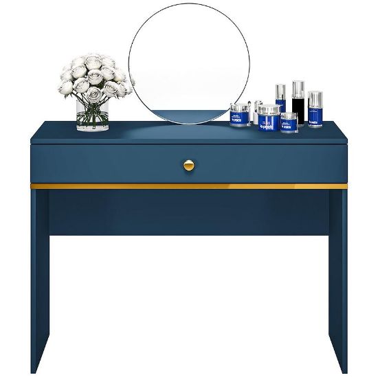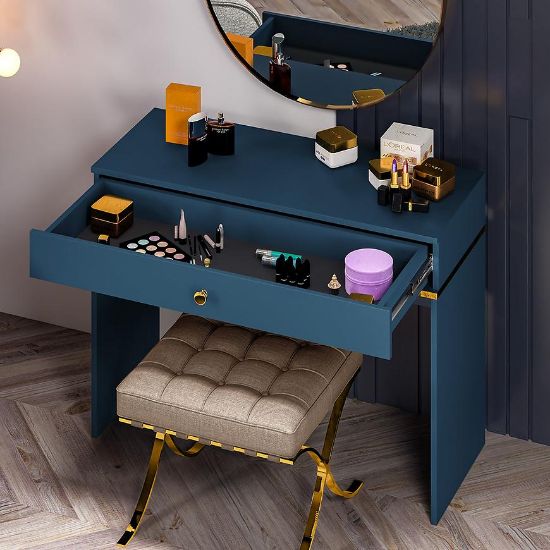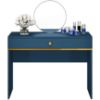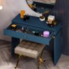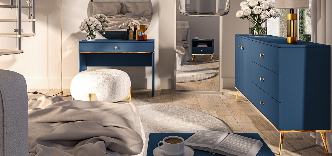 Toaletka Marine 09 to elegancki i funkcjonalny mebel, który wnosi nowoczesny urok i praktyczność do każdej sypialni lub garderoby. Jej ciemny błękit i matowe wykończenie tworzą harmonijną całość, która doskonale wkomponuje się w nowoczesne wnętrza.Toaletka Marine 09 zachwyca głębokim, ciemnym błękitem, który wprowadza do wnętrza poczucie spokoju i elegancji. Matowe wykończenie dodaje jej subtelności i klasy.