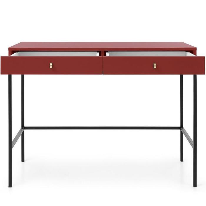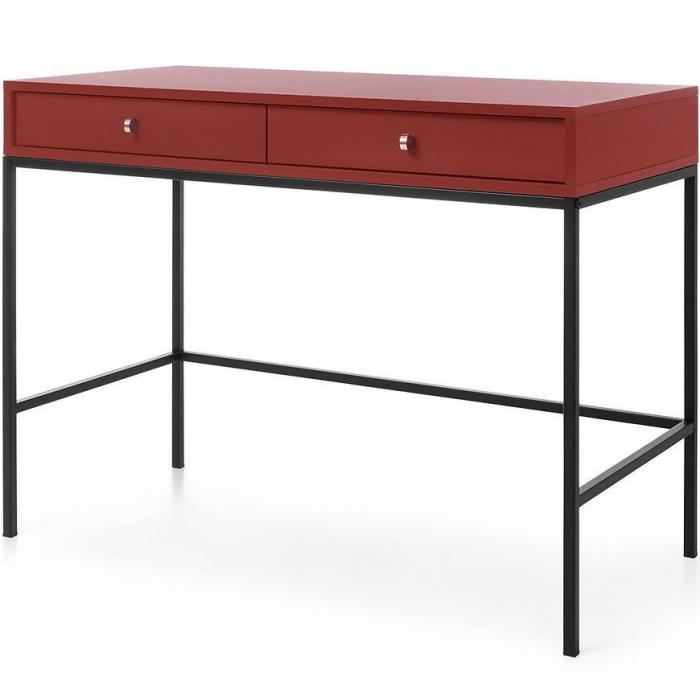 Kolekcja komód Mono to meble utrzymane w stylu loftowym, ultra nowoczesne, które świetnie sprawdzą się w nowoczesnych, industrialnych wnętrzach. Mocne, ale jednocześnie stłumione kolory w połączeniu z zachowanym minimalizmem to świente rozwiązanie do wnętrz, w których chcemy zachować spójność wystroju, ale także podkreślić jego oryginalny charakter. Dzięki temu, że konstrukcja jest umieszczona na wysokich nóżkach umożliwia nam odkurzenie czy umycie podłogi pod meblami. Toaletka posiada dwie wysuwane szuflady, w których możemy umieścić drobiazgi (kosmetyki, parasol okulary przeciwsłoneczne, klucze). Toaletka może być uzupełnieniem aranżacji w sypialni, salonie, ale również w przedpokoju (pełniąc rolę konsolki).